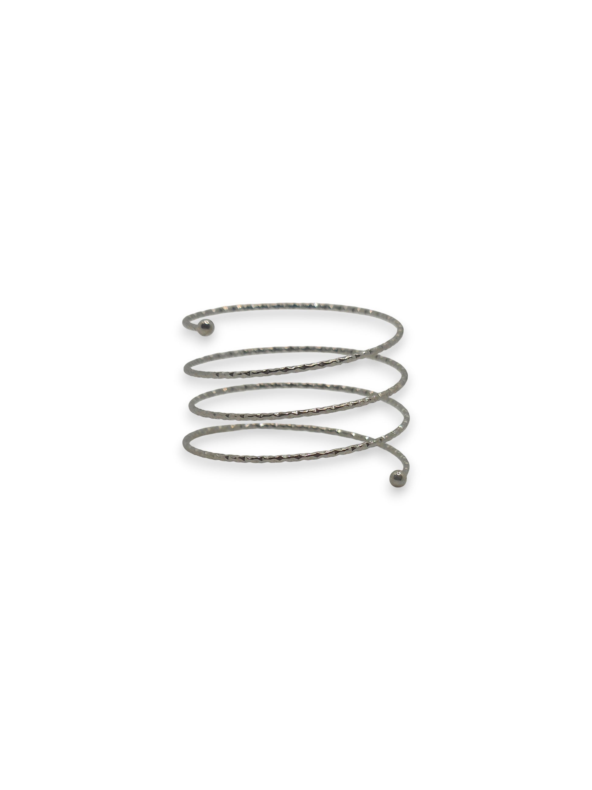 Anello a spirale con texture martellata e design aperto regolabile, che avvolge il dito con eleganza naturale. Regolabile, per adattarsi perfettamente ad ogni misura.