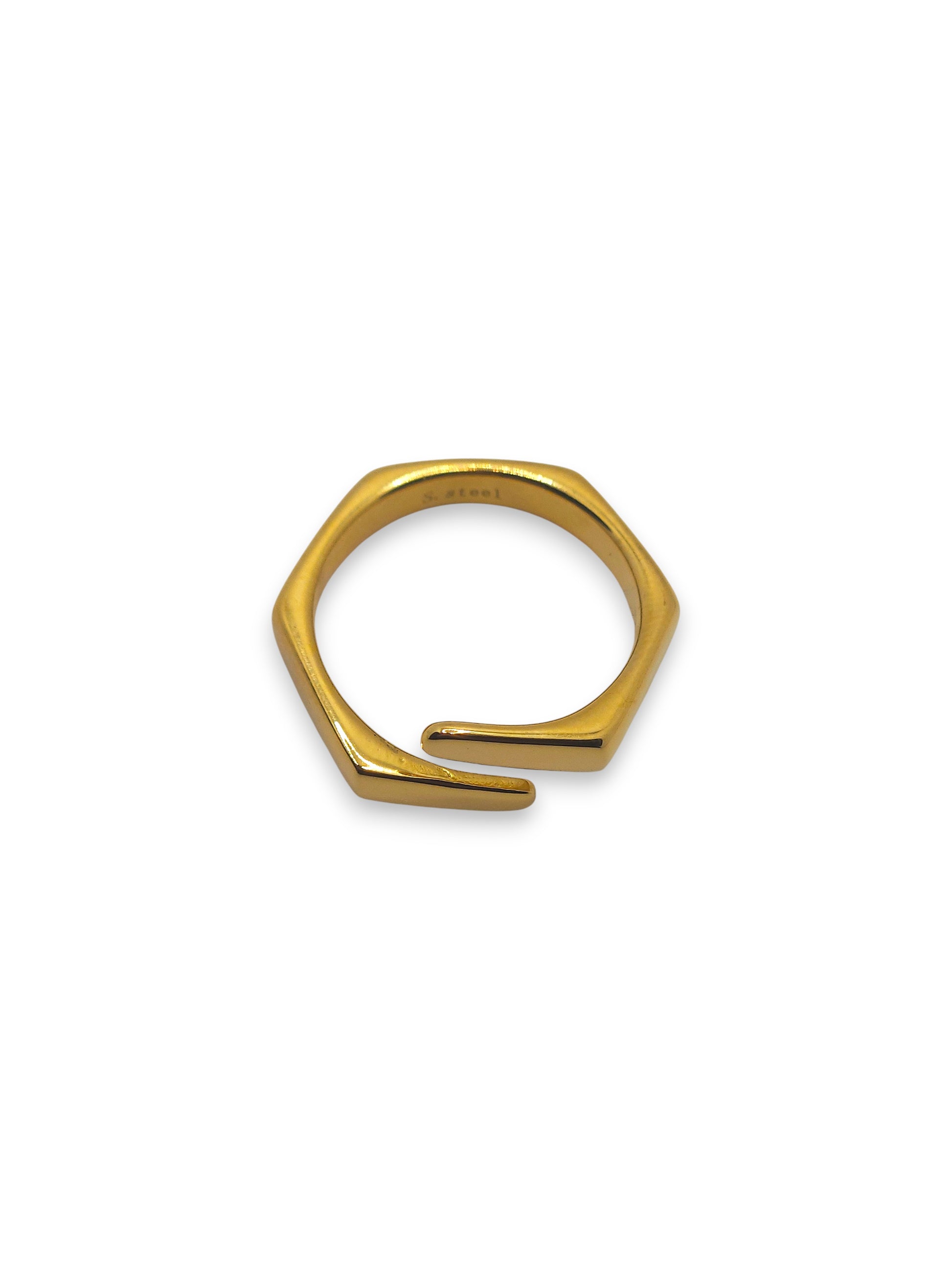 Anello bullone minimal dal design aperto con linee pulite e moderne. Perfetto per chi ama uno stile essenziale ma d’impatto.
