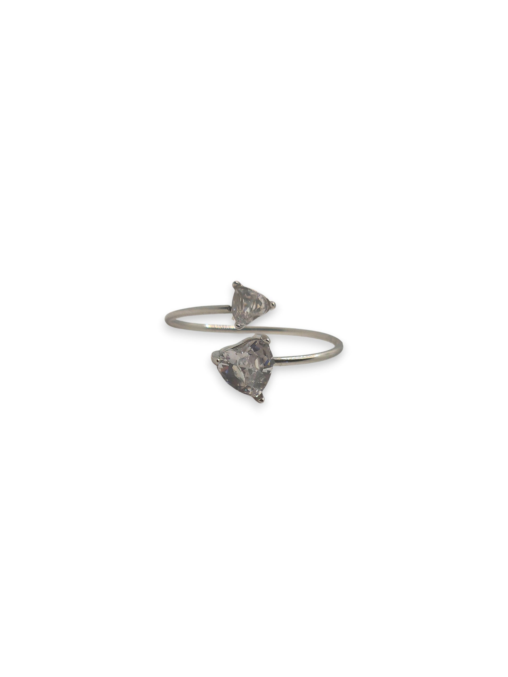 Anello aperto con doppia pietra a forma di cuore blu. Romantico e moderno, dona luce e carattere a ogni look.