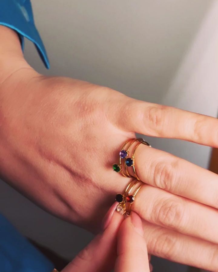 Anello fedina regolabile con punto luce brillante, disponibile in vari colori. Elegante e deciso, perfetto per un tocco di colore raffinato.