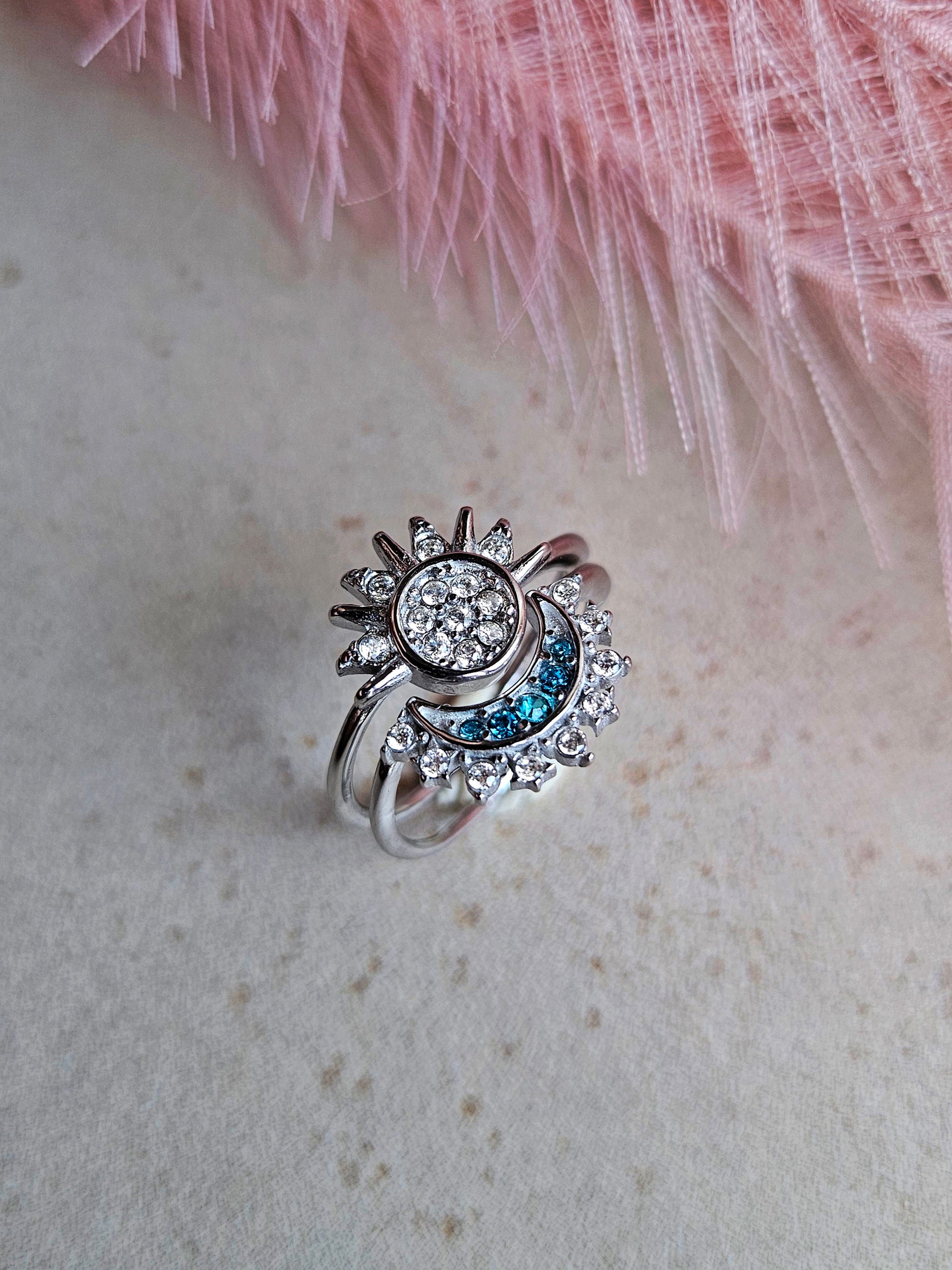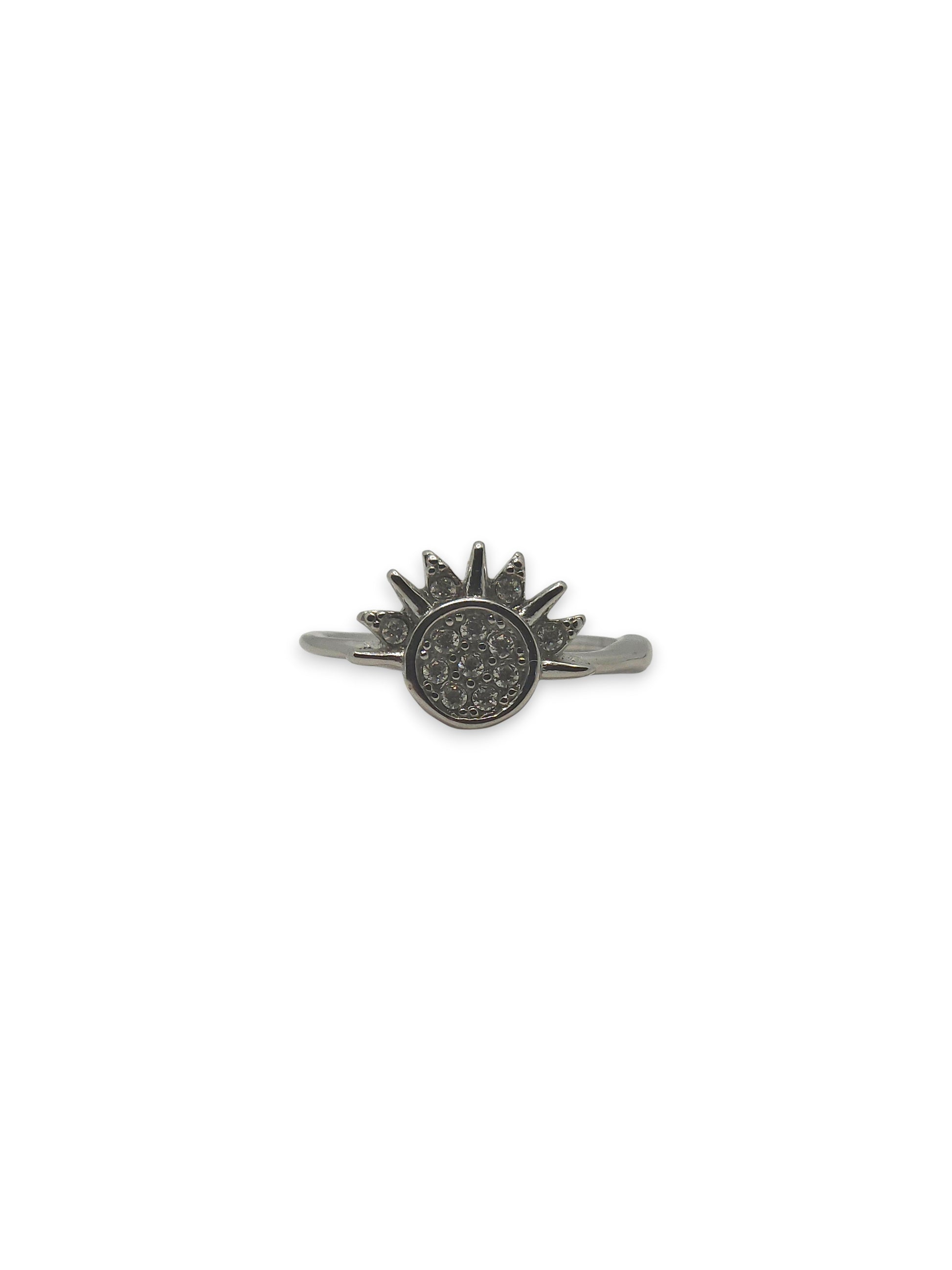 Anello con charm a forma di sole decorato da zirconi luminosi. Simbolo di energia e luce, si abbina perfettamente all’anello Mezzaluna: i due si incastrano creando un effetto armonioso e romantico.