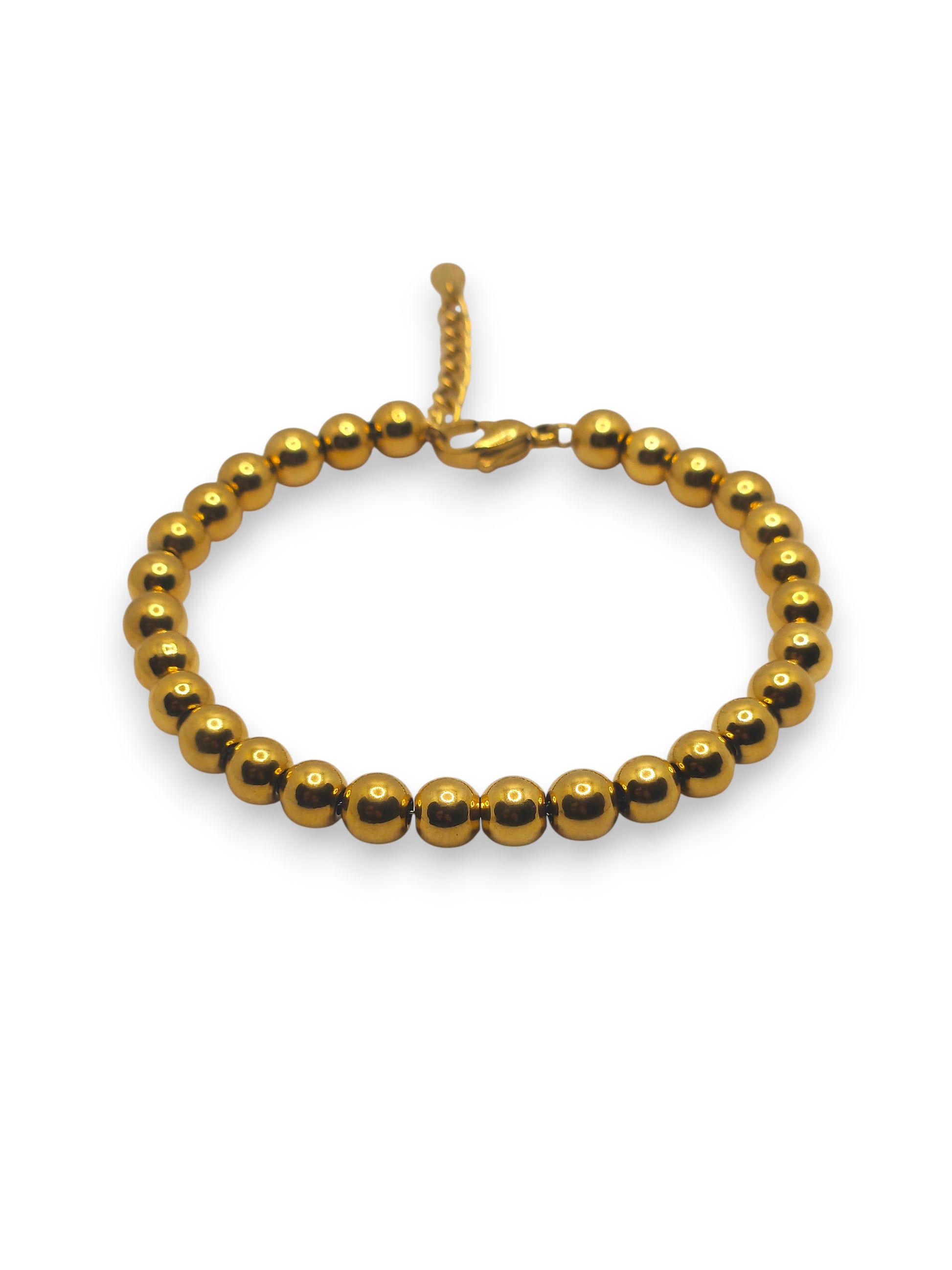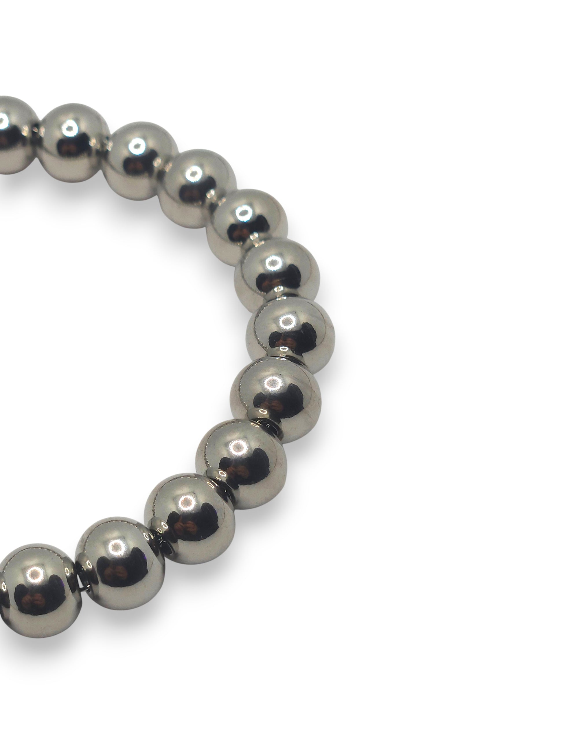 Bracciale in acciaio con sfere lisce e luminose. Un modello classico rivisitato in chiave contemporanea, perfetto da abbinare a ogni outfit.