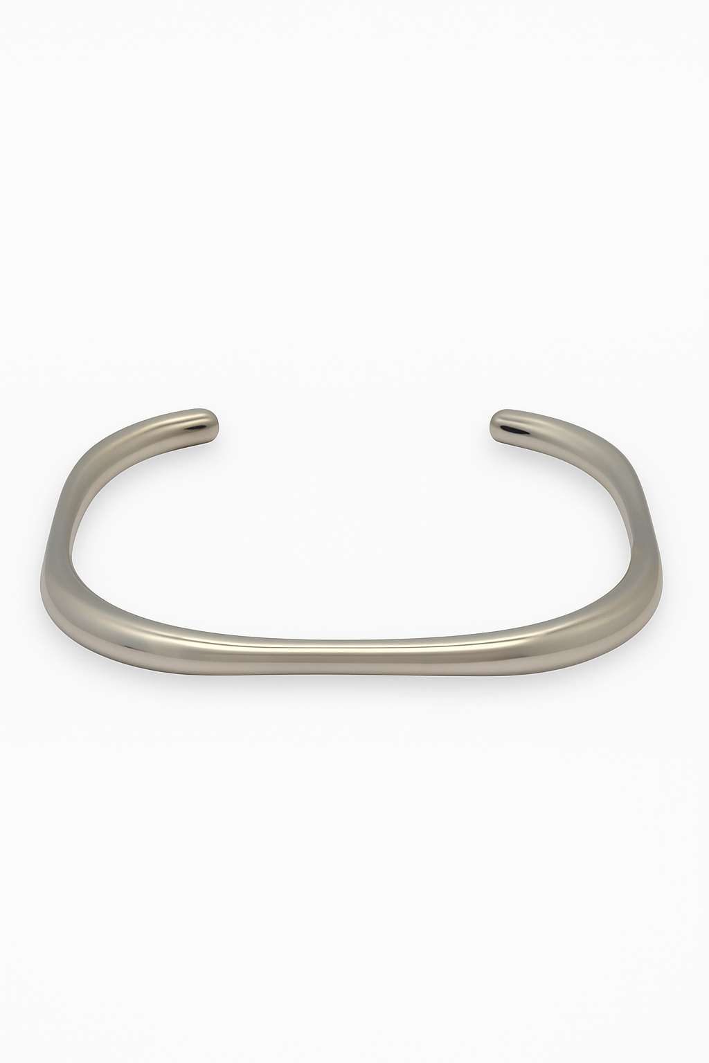 Un bracciale rigido essenziale, sagomato in una linea pulita che abbraccia il polso con discreta eleganza. La sua forma morbida e leggermente squadrata gli dà un carattere moderno senza rinunciare al fascino classico. Perfetto da solo per un look minimal, splendido abbinato ad altri bracciali per un gioco di layering.