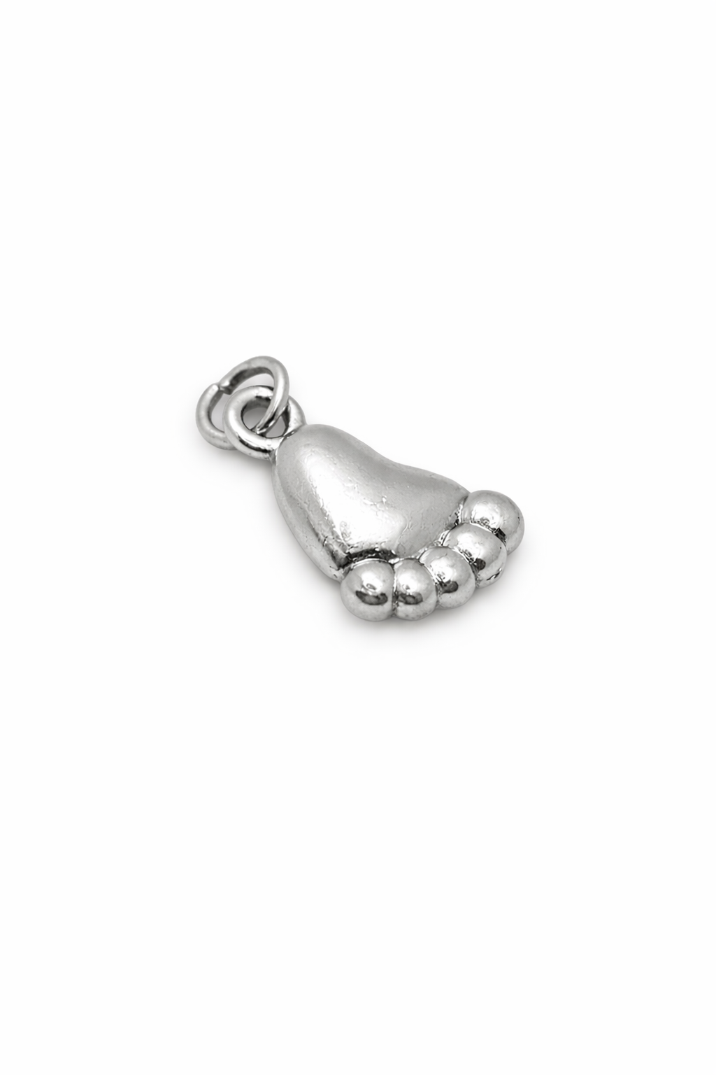 Ciondolo a forma di piedino in acciaio inossidabile, con finitura liscia e luminosa.