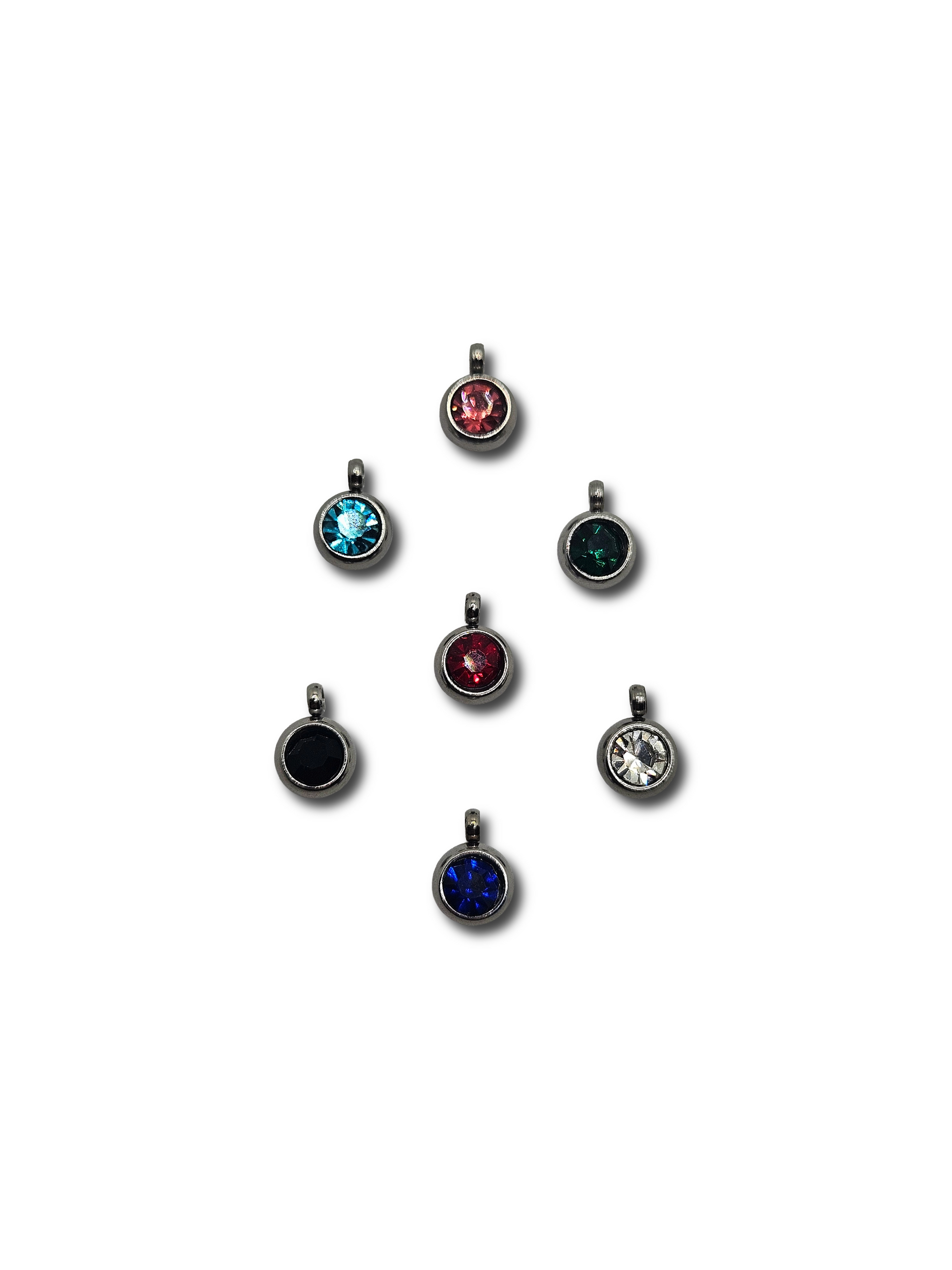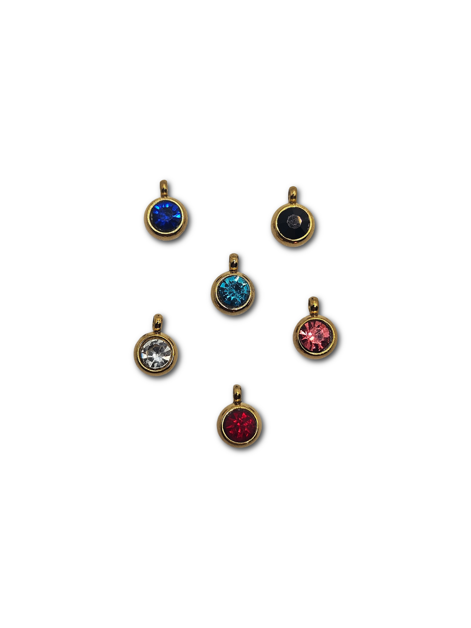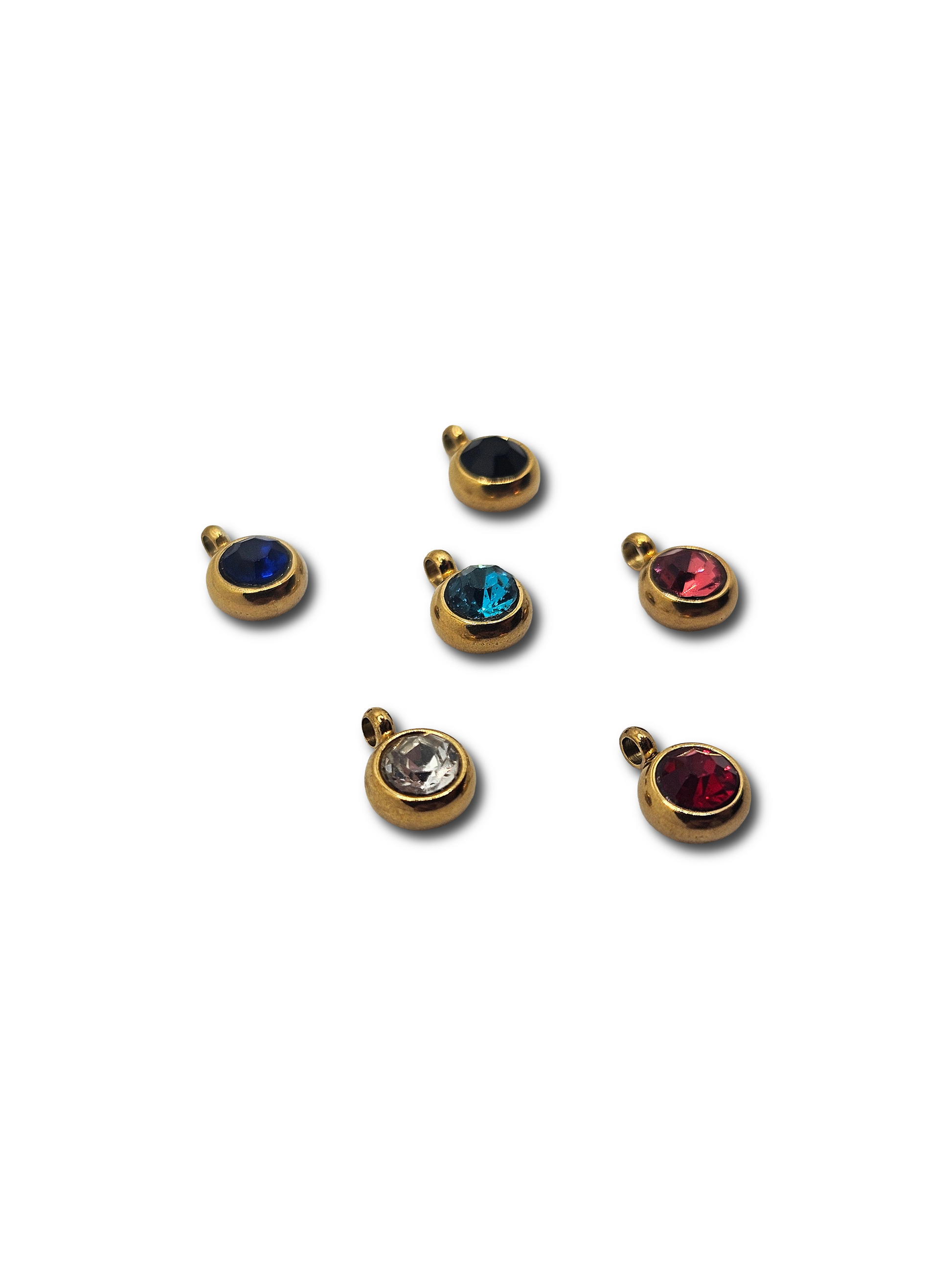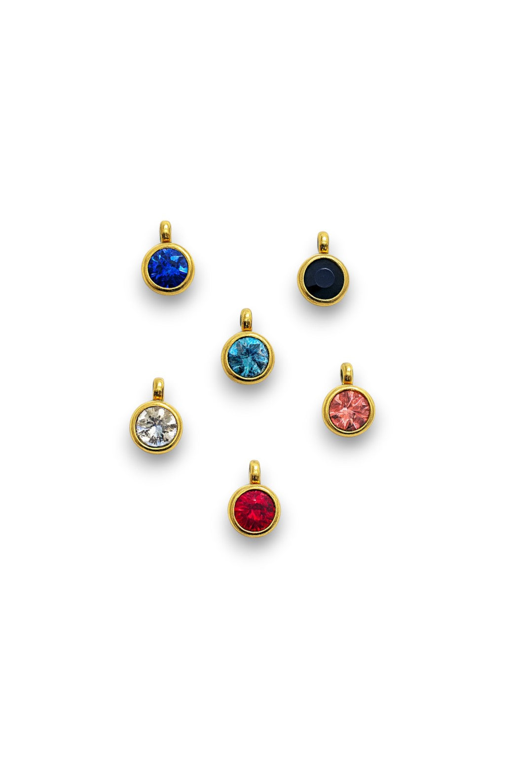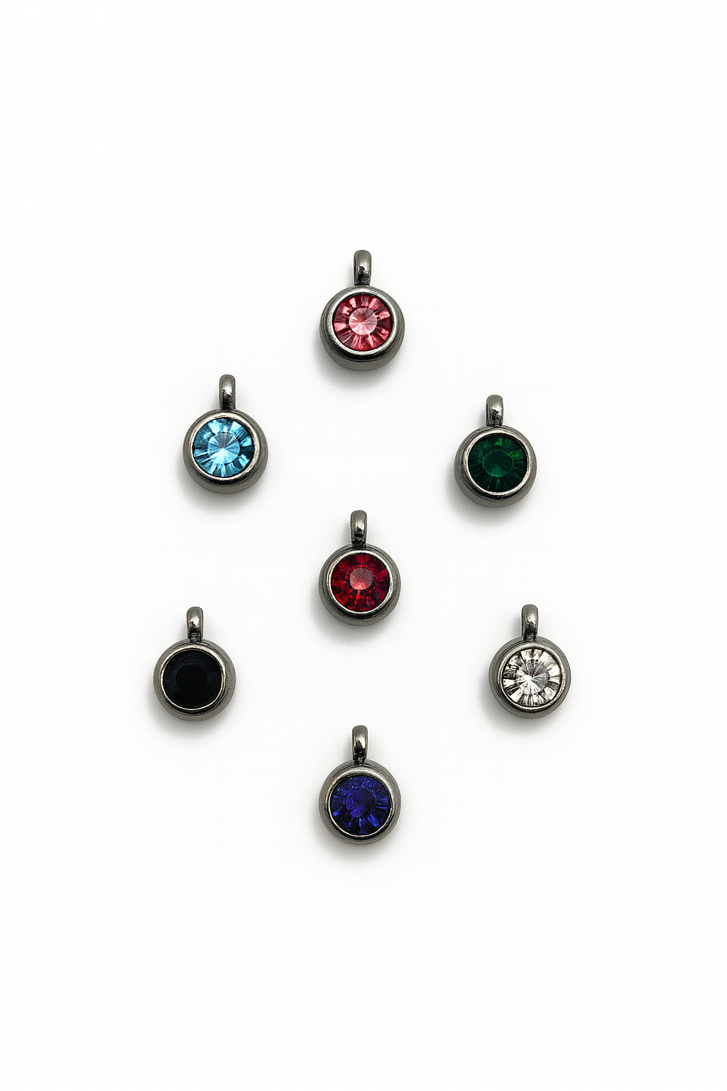 Piccoli ciondoli con cristalli colorati incastonati. Non il classico punto luce. Disponibili in diversi colori per personalizzare la tua collana o bracciale.