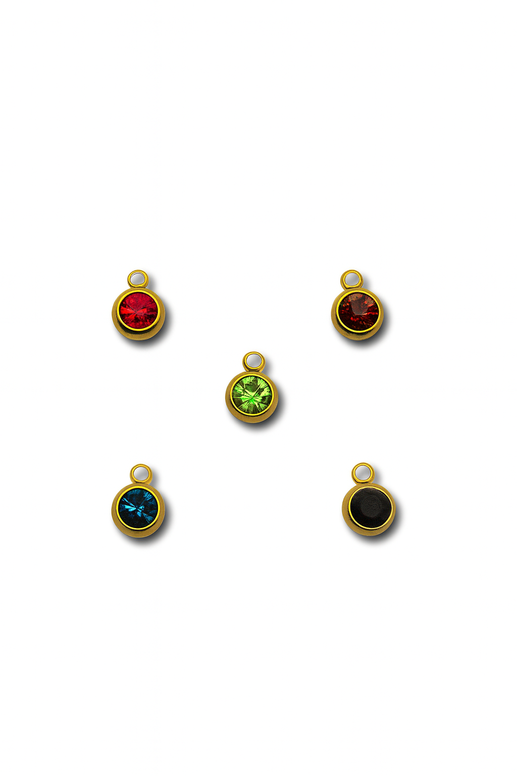 Piccoli charm tondi con zirconi colorati incastonati: disponibili in varie tonalità per illuminare e rendere unica ogni composizione.