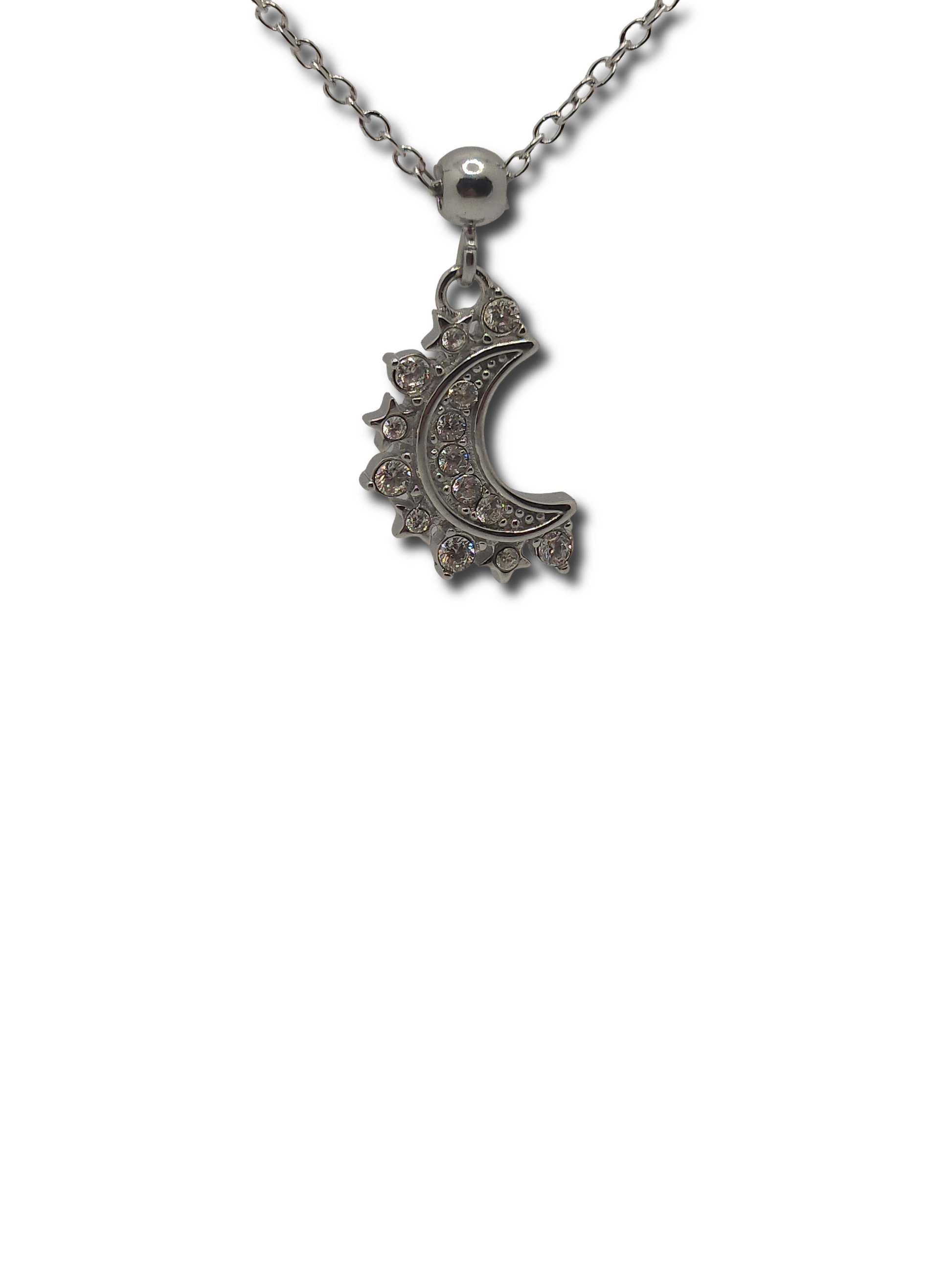 Impreziosita da un delicato ciondolo a mezzaluna con dettagli luminosi, presenta un sistema innovativo con chiusura ad ago e un cursore interno in silicone che permette di regolare facilmente la lunghezza e la posizione del ciondolo senza rischiare di perderlo. Un accessorio raffinato, funzionale e versatile, ideale da indossare tutti i giorni o per occasioni speciali.