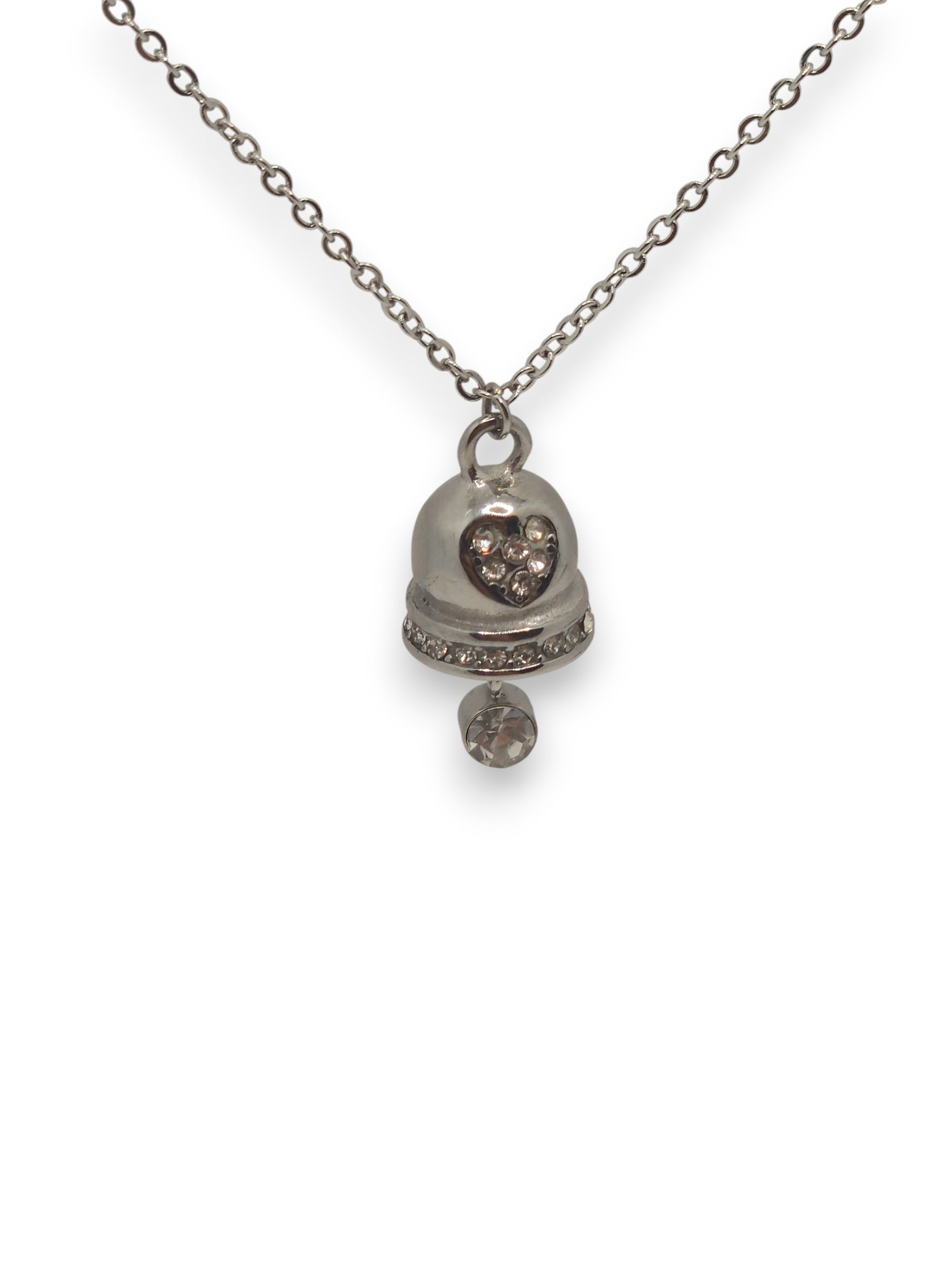 Collana con pendente a campanella, decorata da piccoli zirconi. Un portafortuna elegante e raffinato.
