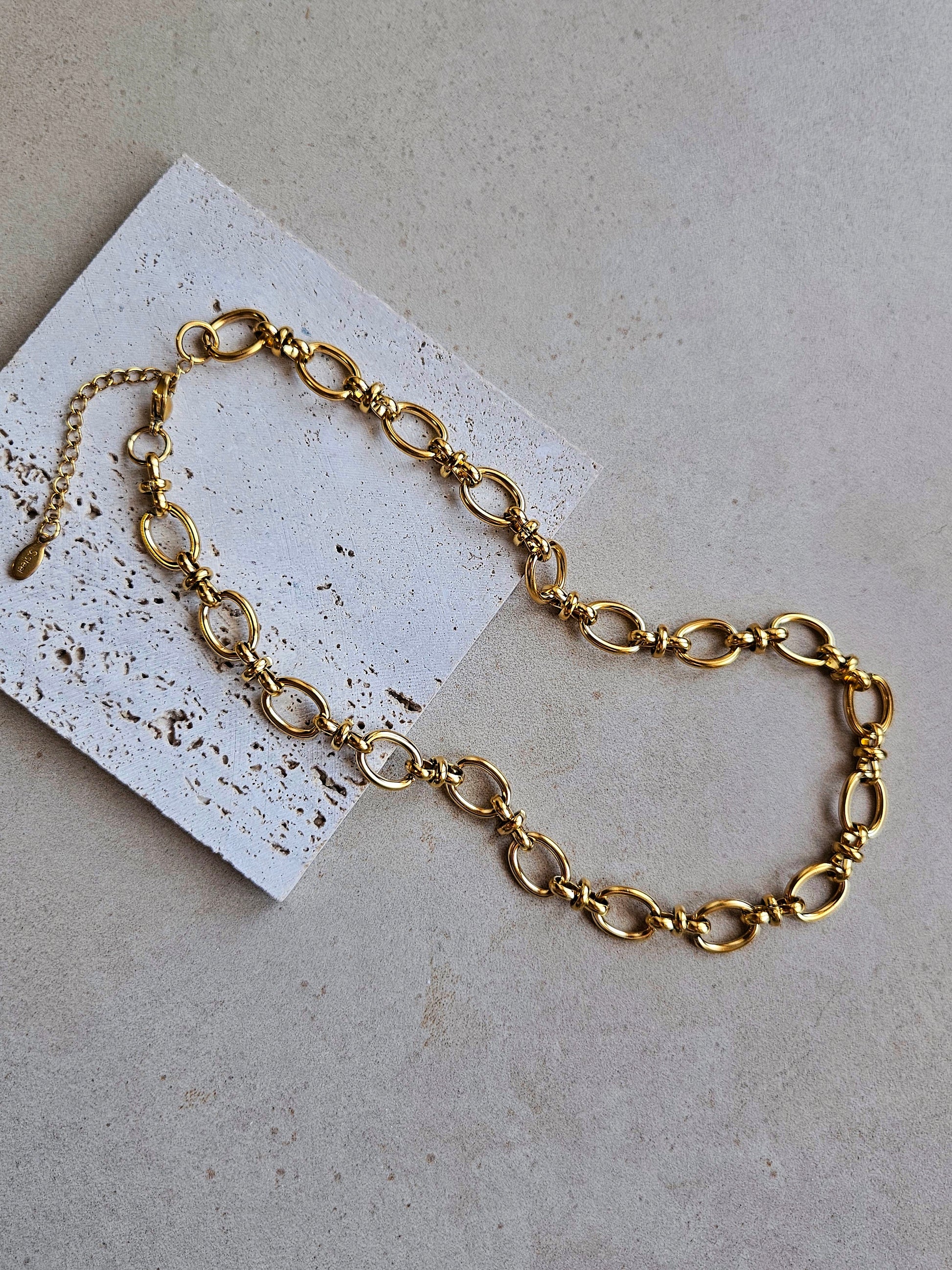 Classica ed elegante, questa collana a maglie ovali è un must-have senza tempo. Il design armonioso e bilanciato la rende un accessorio perfetto per completare look casual o formali. Leggera e confortevole, è ideale per chi ama la semplicità con un tocco di stile.