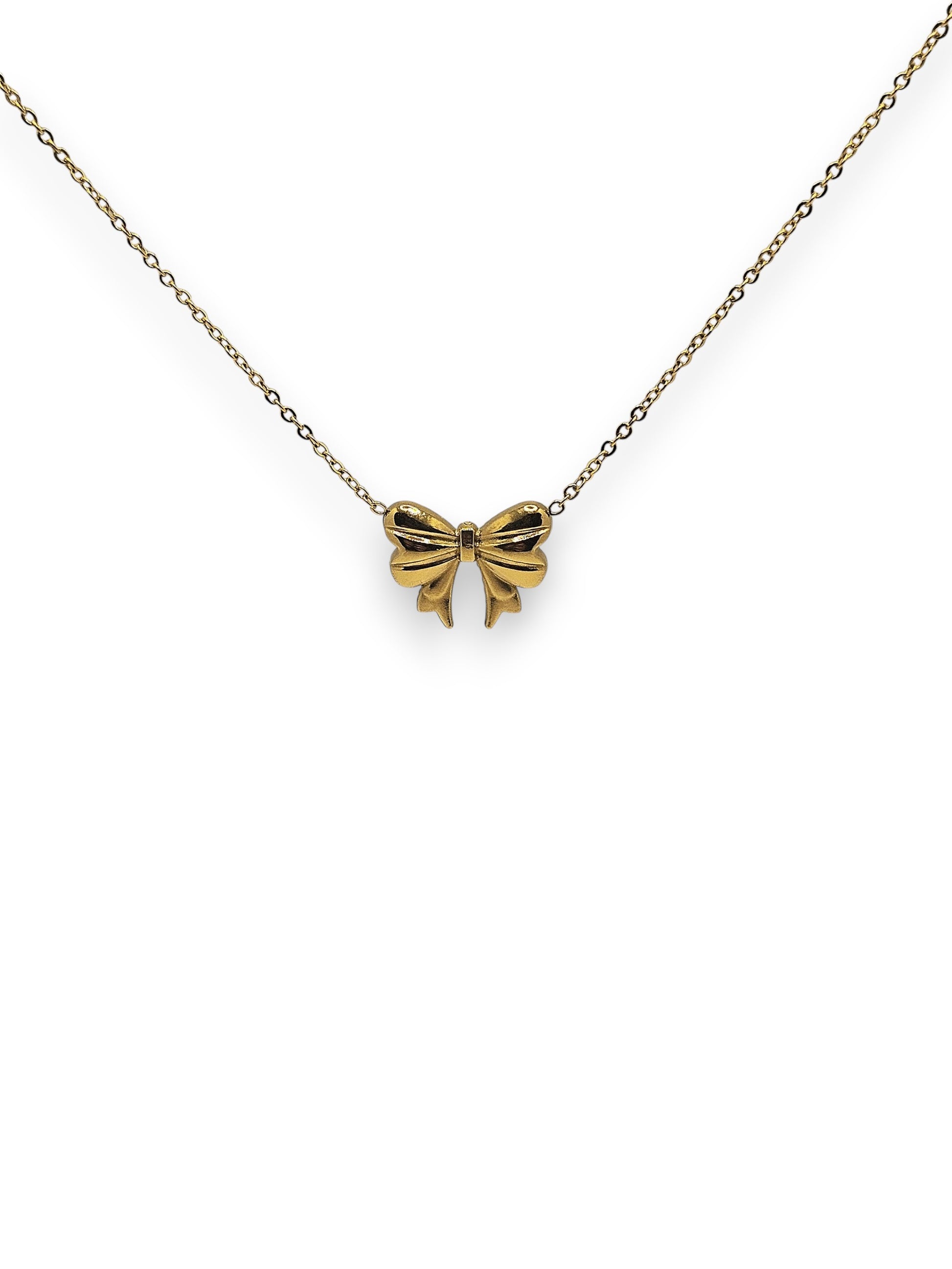 Raffinata collana con pendente a fiocco, semplice ed elegante, perfetta per dare un tocco di grazia e leggerezza a ogni look.