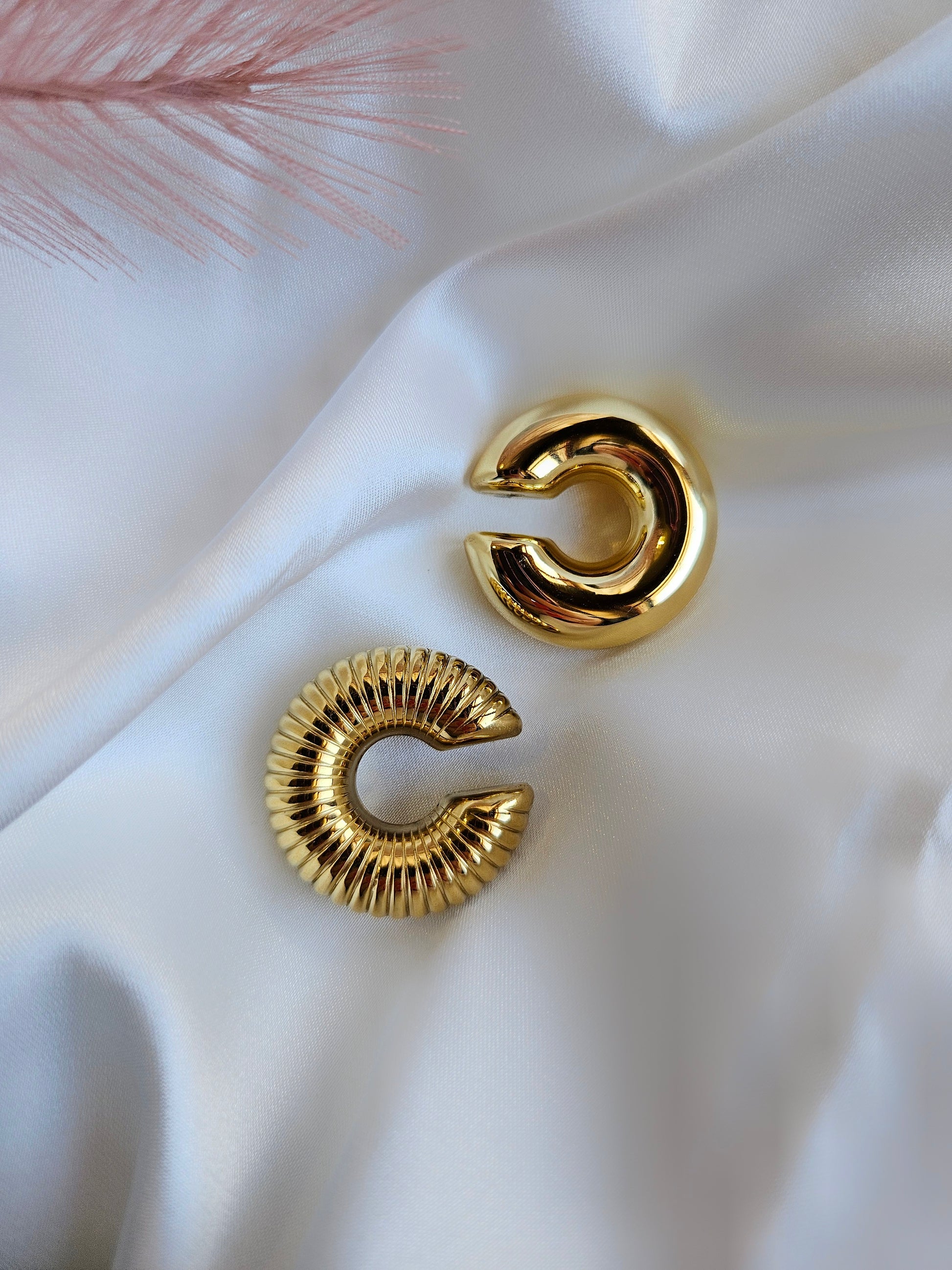 Ear cuff in acciaio inossidabile, con elegante lavorazione rigata. Resistente, anallergico e perfetto per un look moderno.