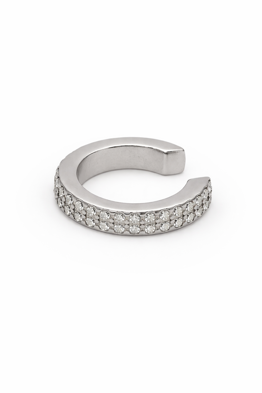 Un ear cuff dal segno deciso ma raffinato, versione 2.0 del Cuff Veretta, caratterizzato da questa doppia fascia luminosa di zirconi che cattura lo sguardo.