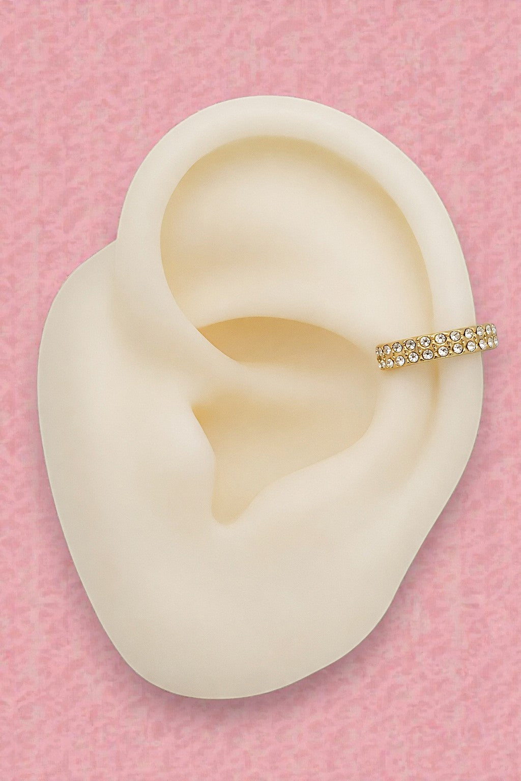 La sua forma avvolge l’orecchio con equilibrio, creando un punto luce continuo che valorizza il profilo in modo moderno e spontaneo.