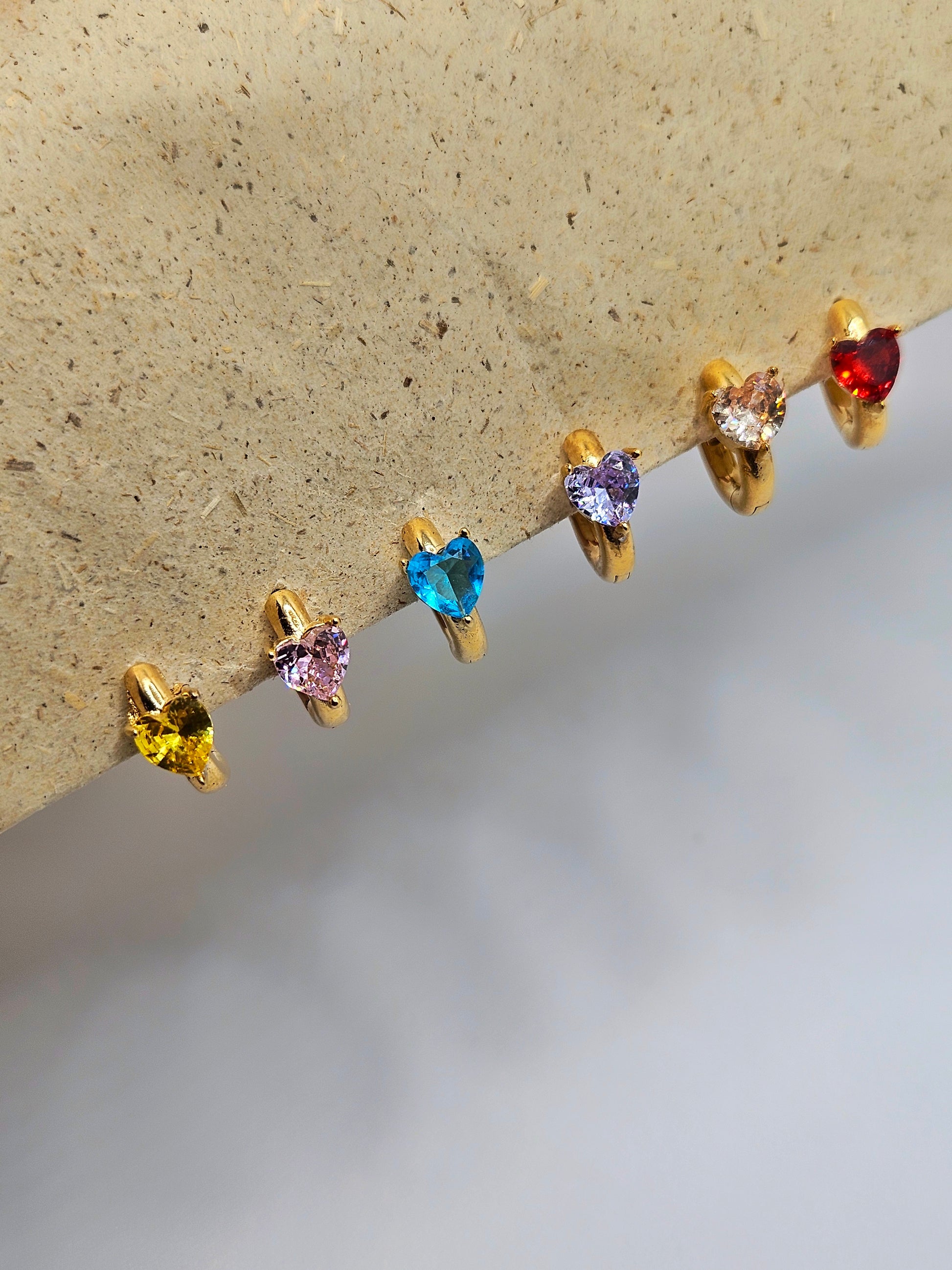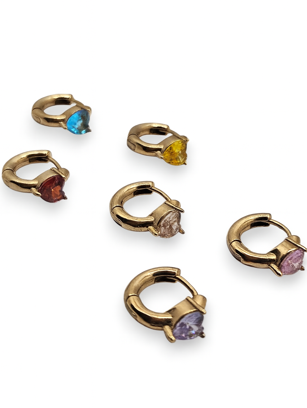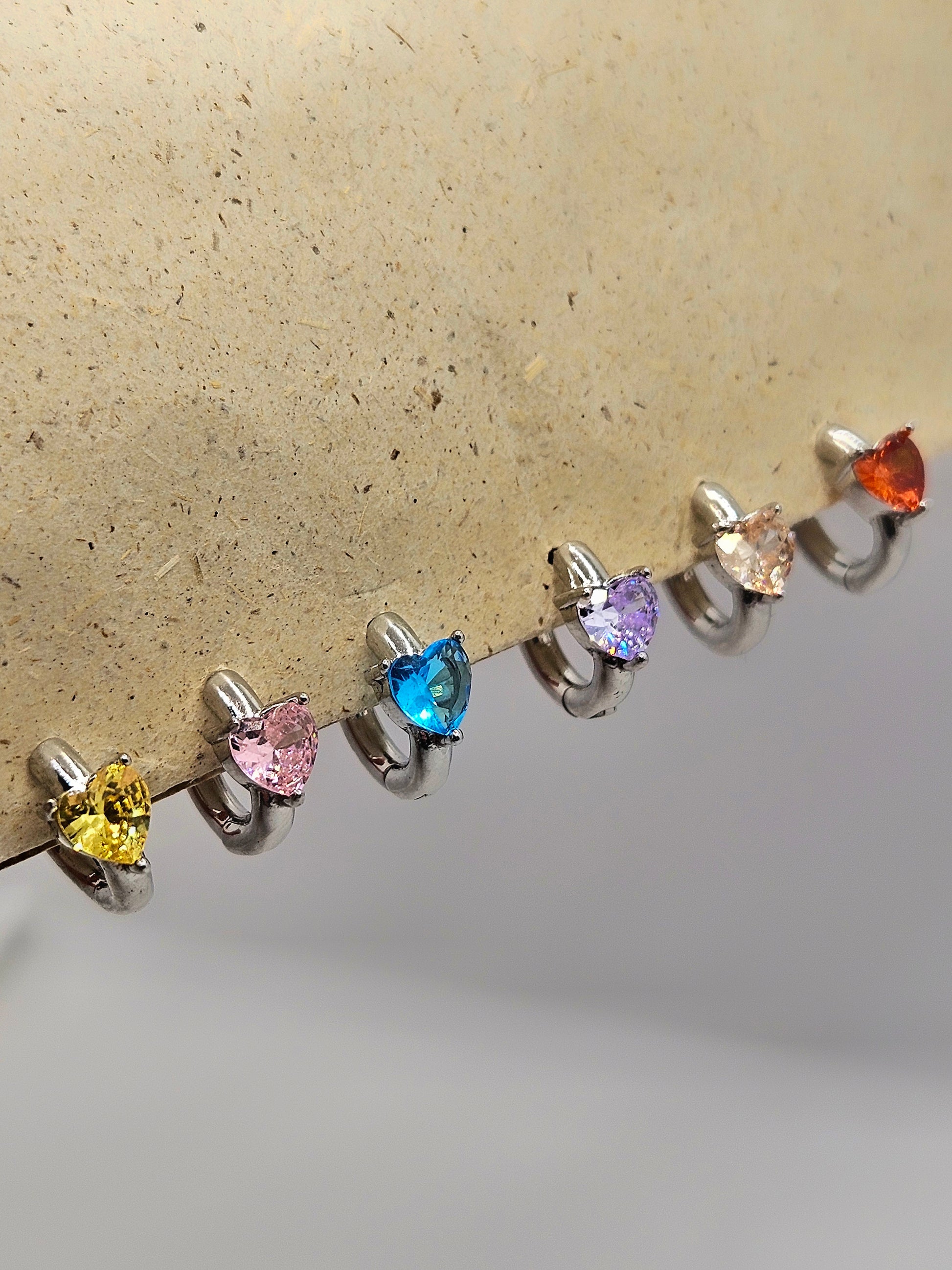 Piccoli, vivaci e irresistibili: questi orecchini a cerchio con zircone taglio cuore sono il tocco di colore che mancava al tuo look. Realizzati in acciaio inossidabile, sono disponibili in sei varianti: rosso, blu, giallo, rosa, lilla e champagne.