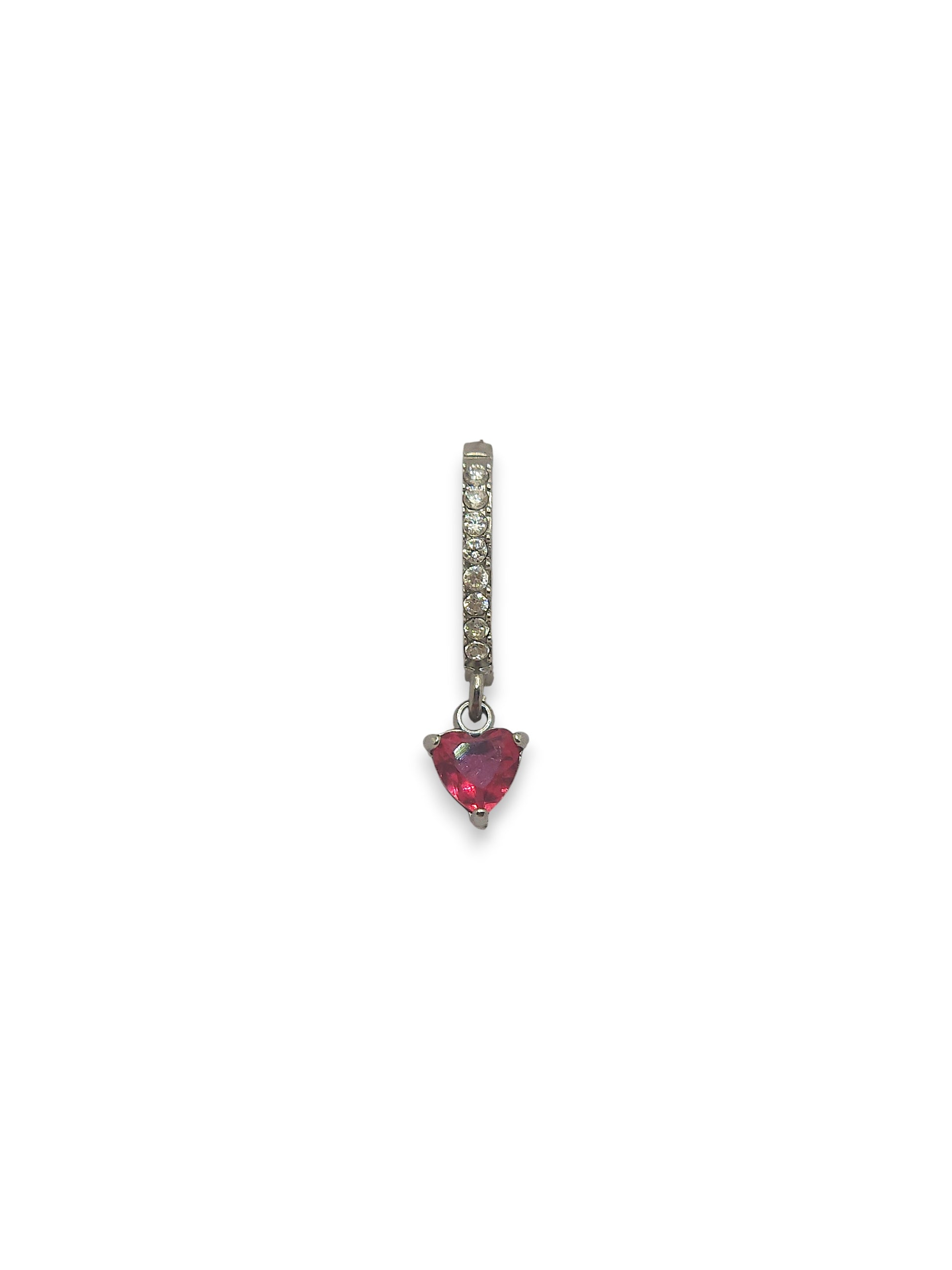 Delicati e luminosi, questi hoop sono arricchiti da piccoli zirconi incastonati lungo la superficie e da un elegante pendente a forma di cuore disponibile in diverse tonalità: bianco, nero, verde, rosso, lilla e azzurro. Perfetti per aggiungere un tocco di colore e romanticismo al tuo look.
