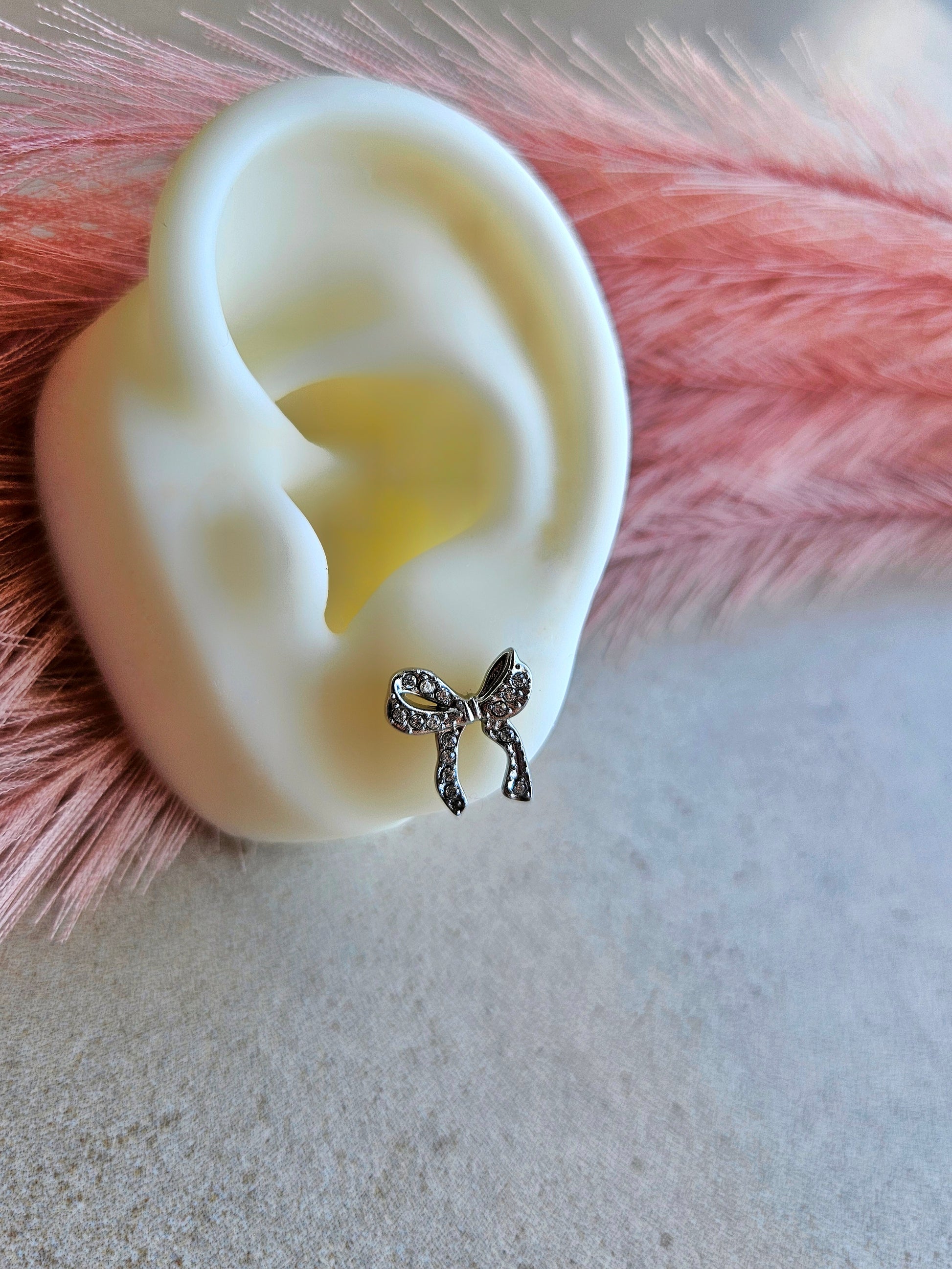 Orecchini lobetto a fiocco con zirconi: eleganti, romantici e luminosi.
