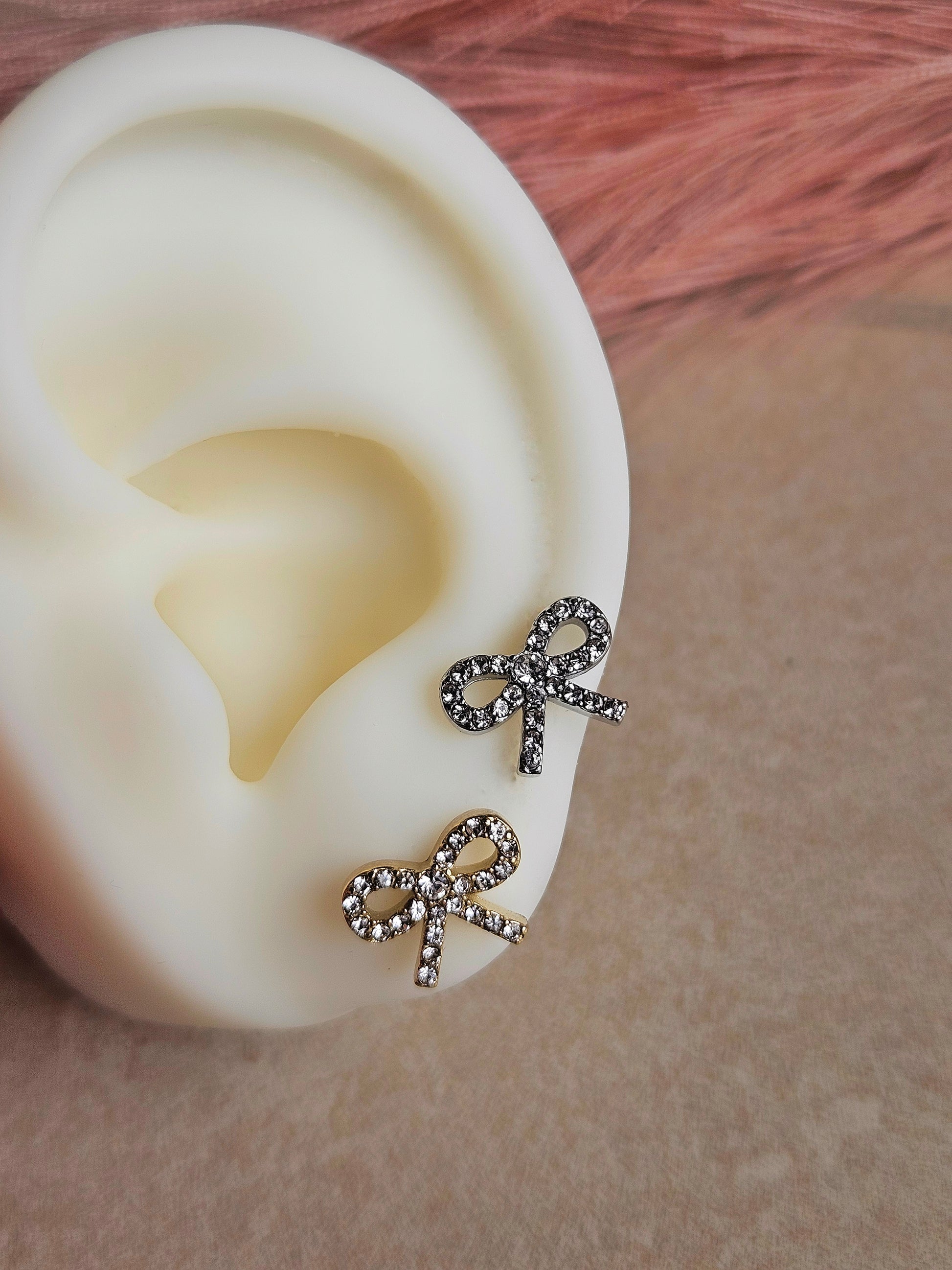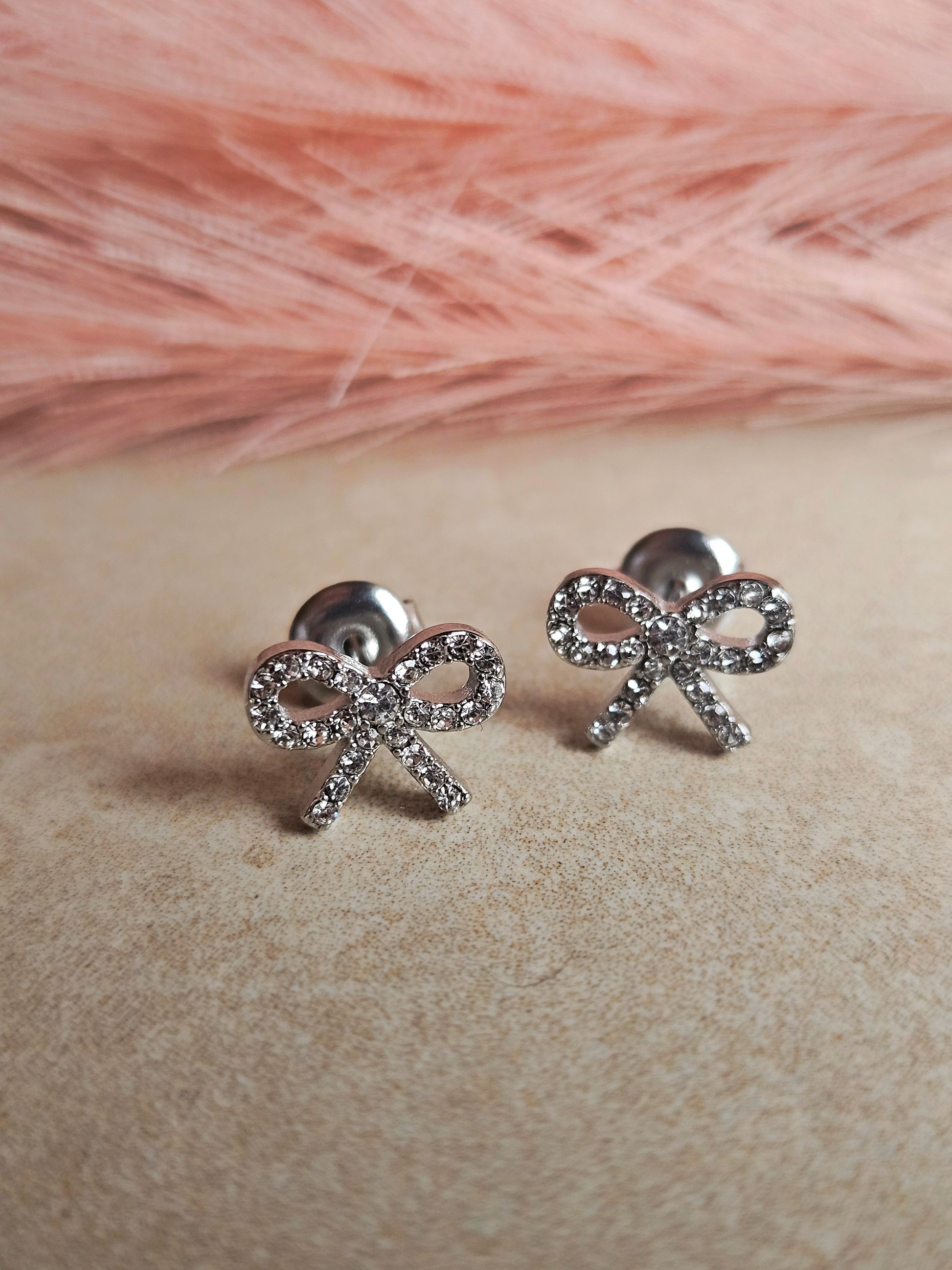Piccoli fiocchi al lobo con zirconi, simbolo di eleganza e dolcezza. Raffinati e femminili, aggiungono un tocco chic a qualsiasi abbinamento.