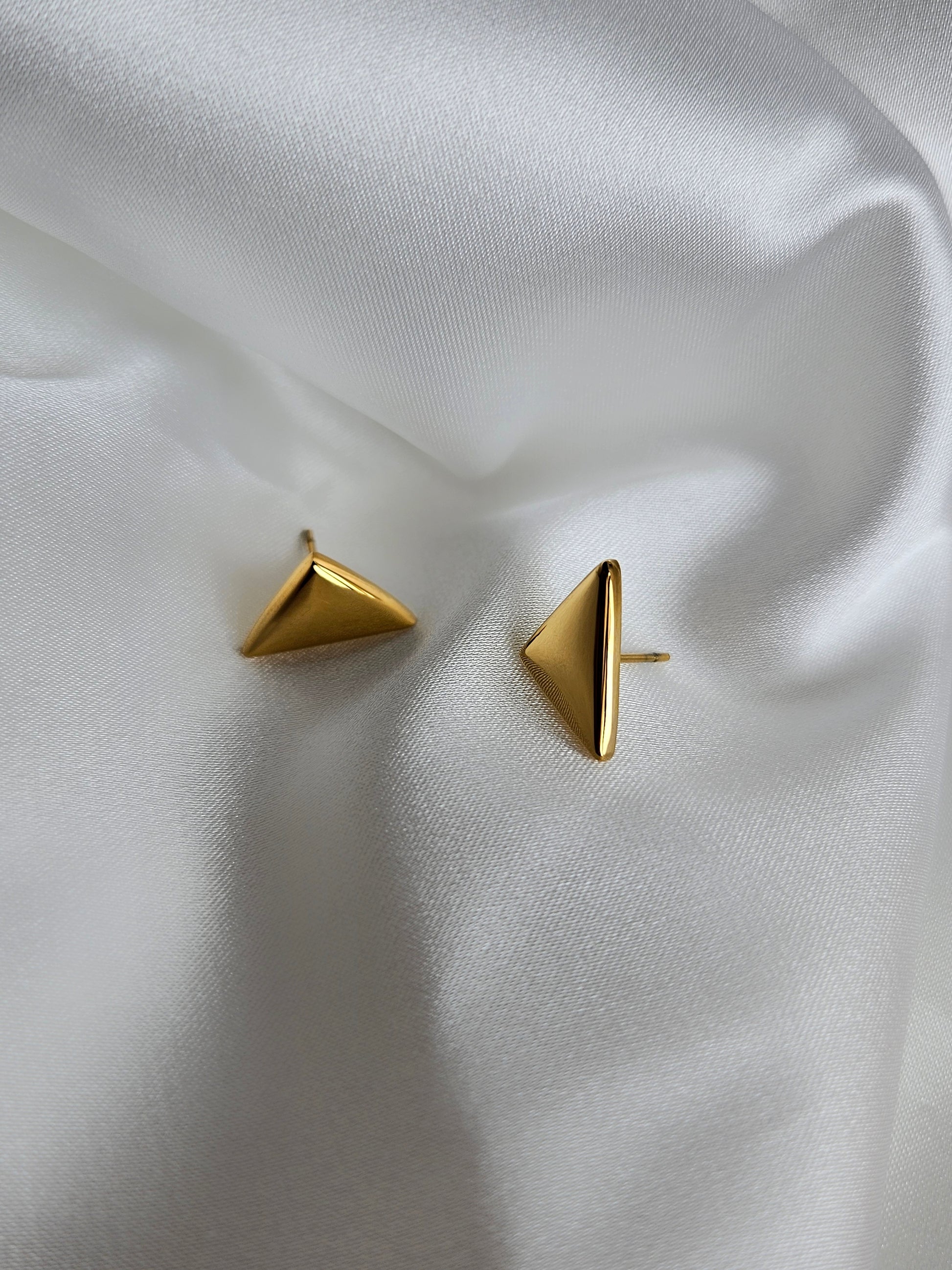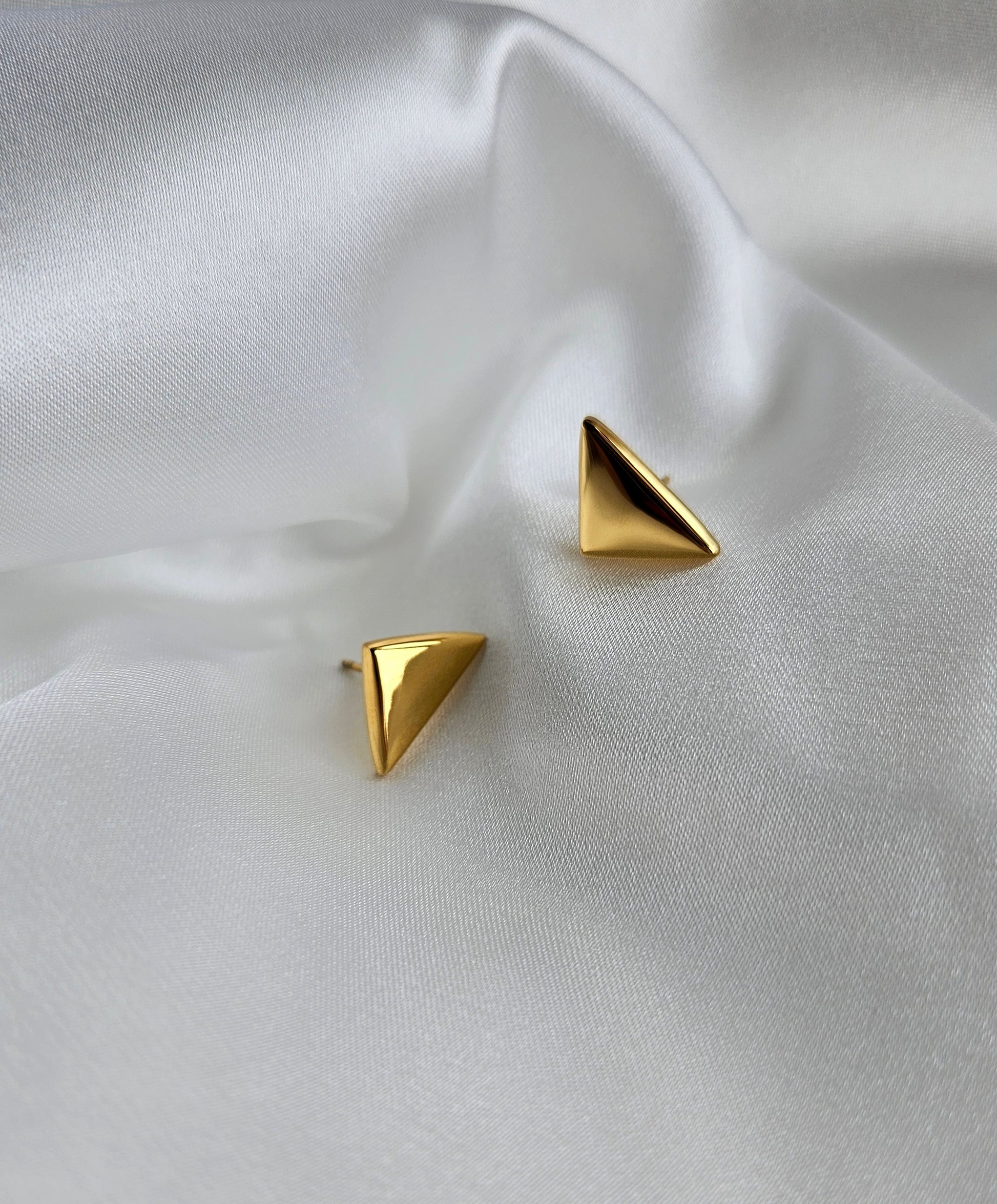 Orecchini lobetto a triangolo, dalle linee geometriche pulite e moderne. Design minimal per un look contemporaneo.