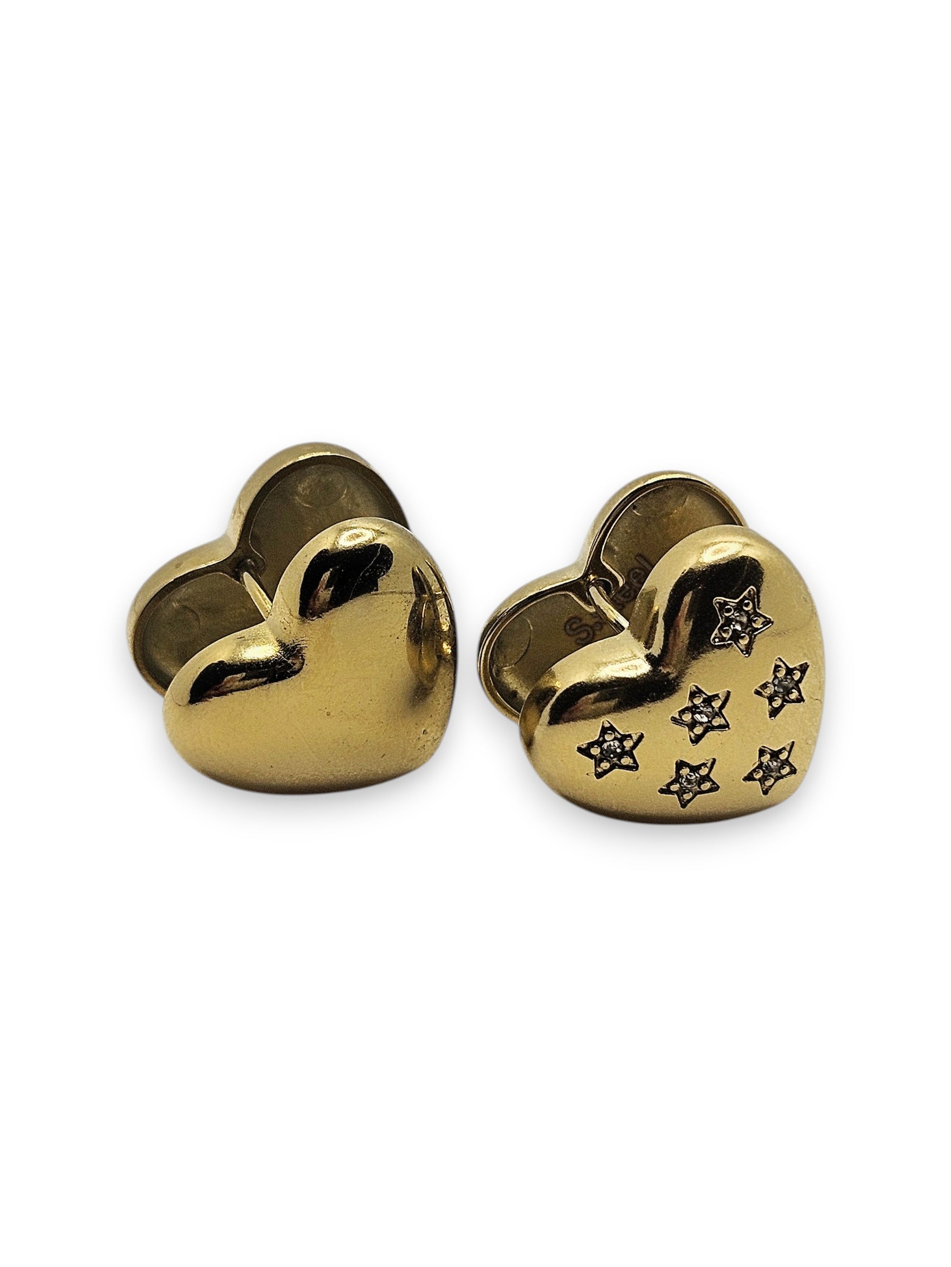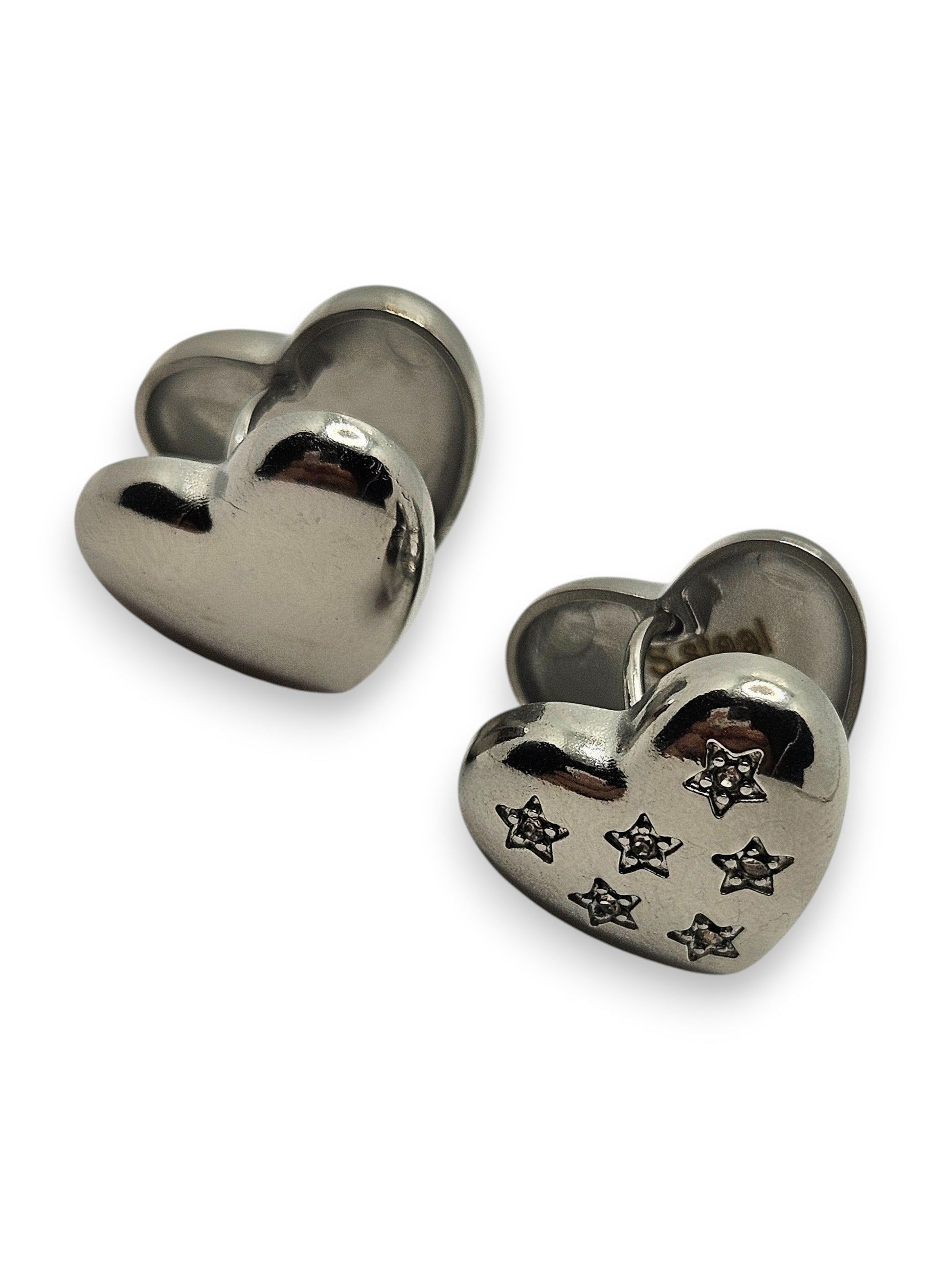 Orecchini a cuore con decorazione di piccole stelle incise, simbolo di amore e desideri. Il design unisce dolcezza e originalità, rendendoli perfetti come regalo speciale o come dettaglio romantico da indossare ogni giorno.