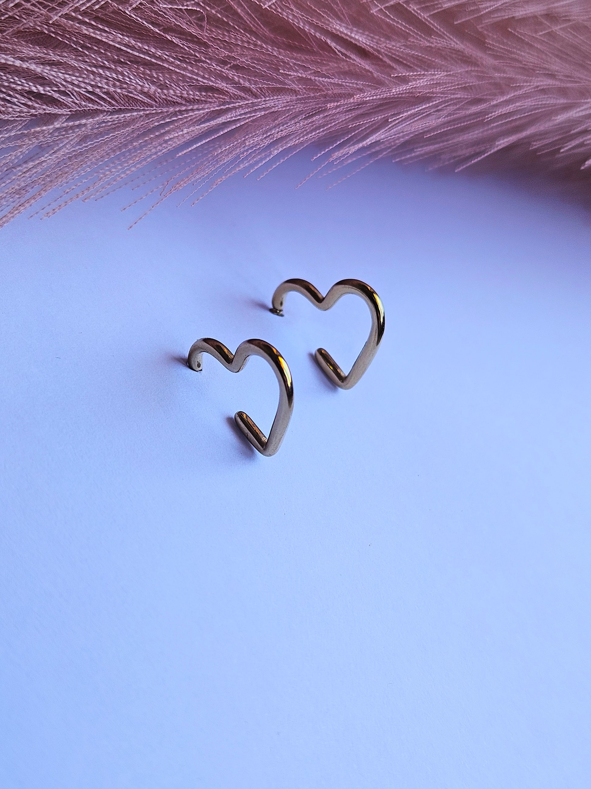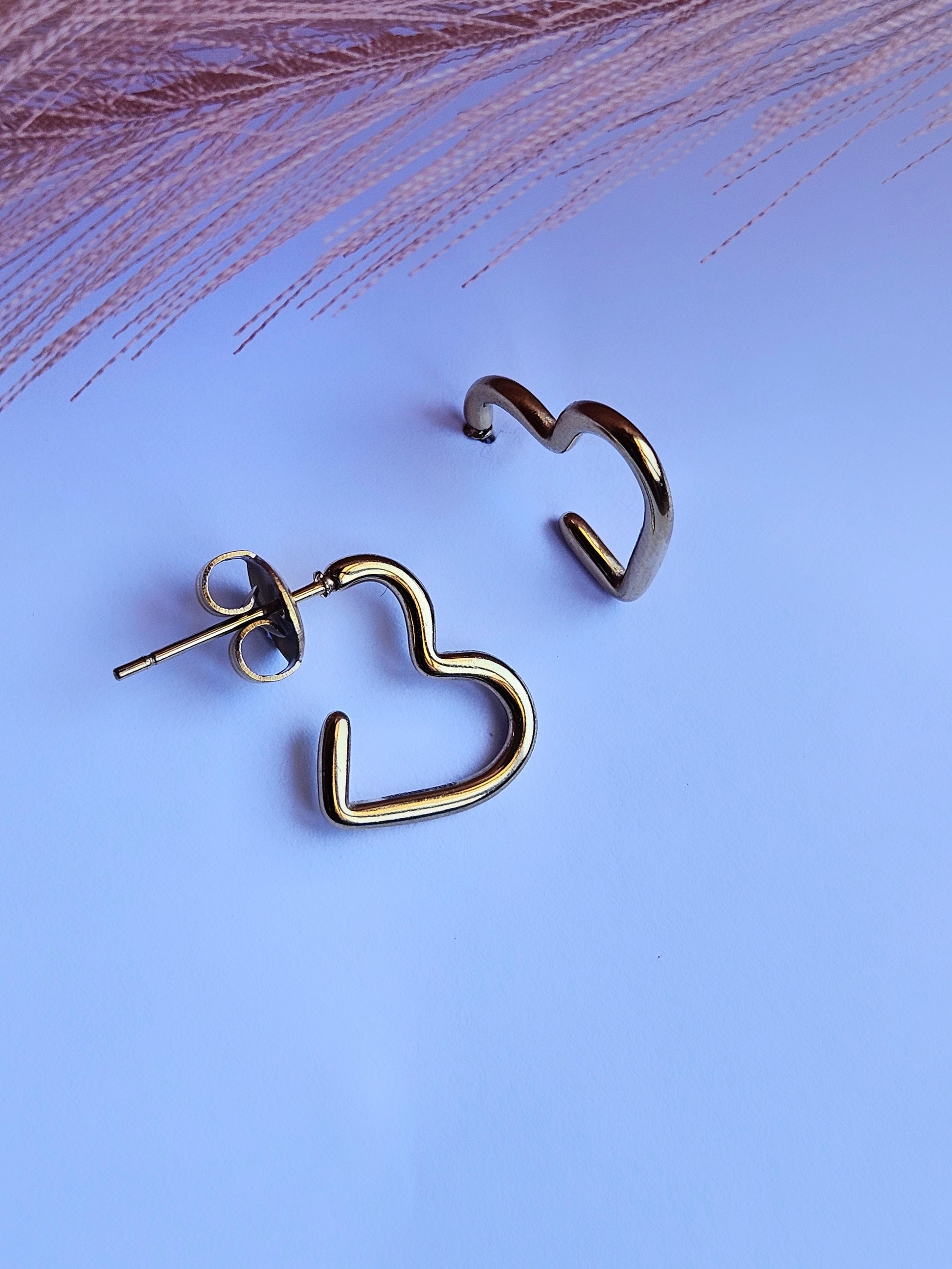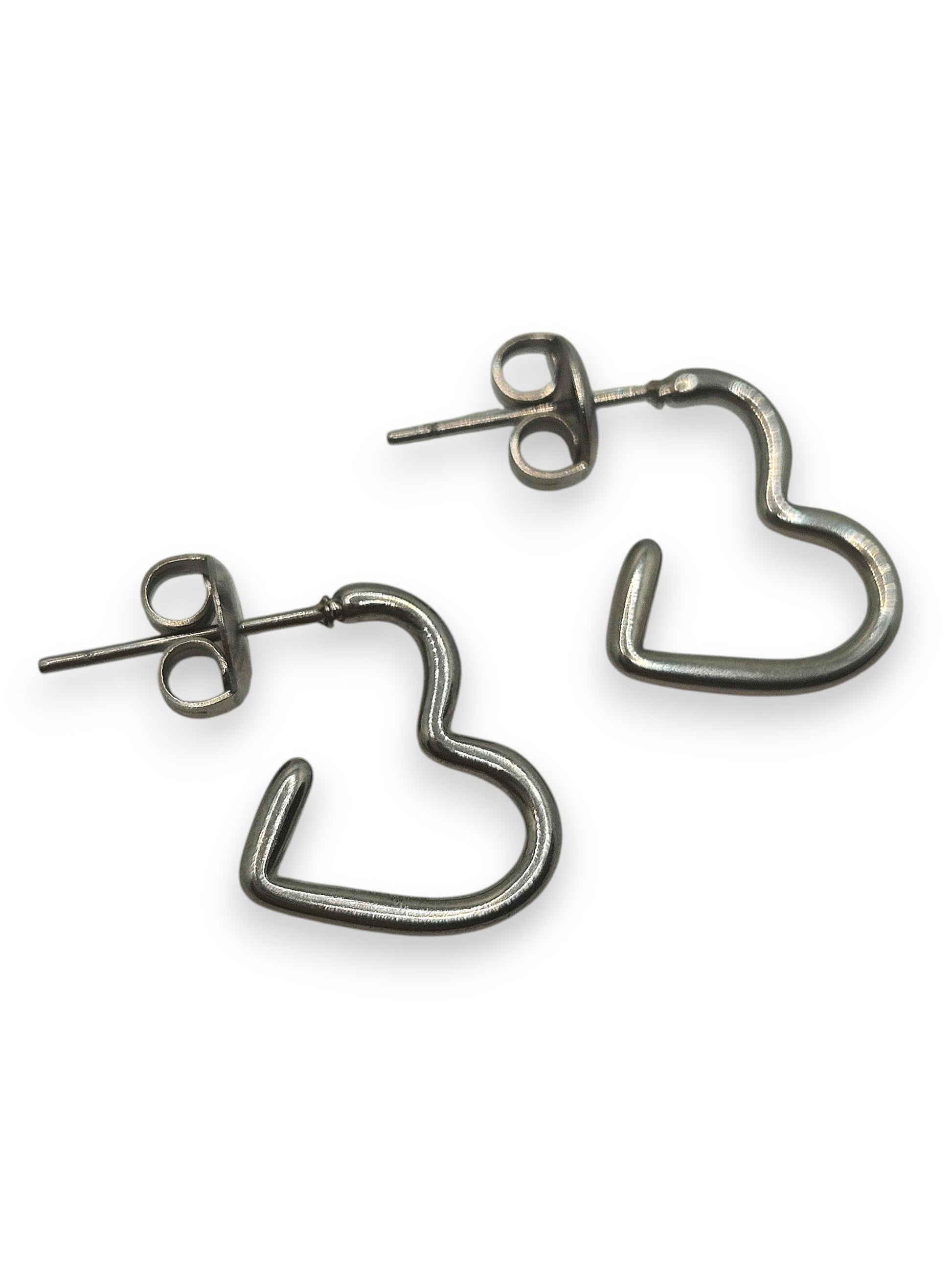 Hoop a forma di cuore in acciaio dal design aperto e minimalista. Moderni e leggeri, rappresentano un simbolo romantico ma dallo stile essenziale. Facili da abbinare, sono perfetti sia per un look quotidiano che per dare un tocco unico a combo più ricercate.