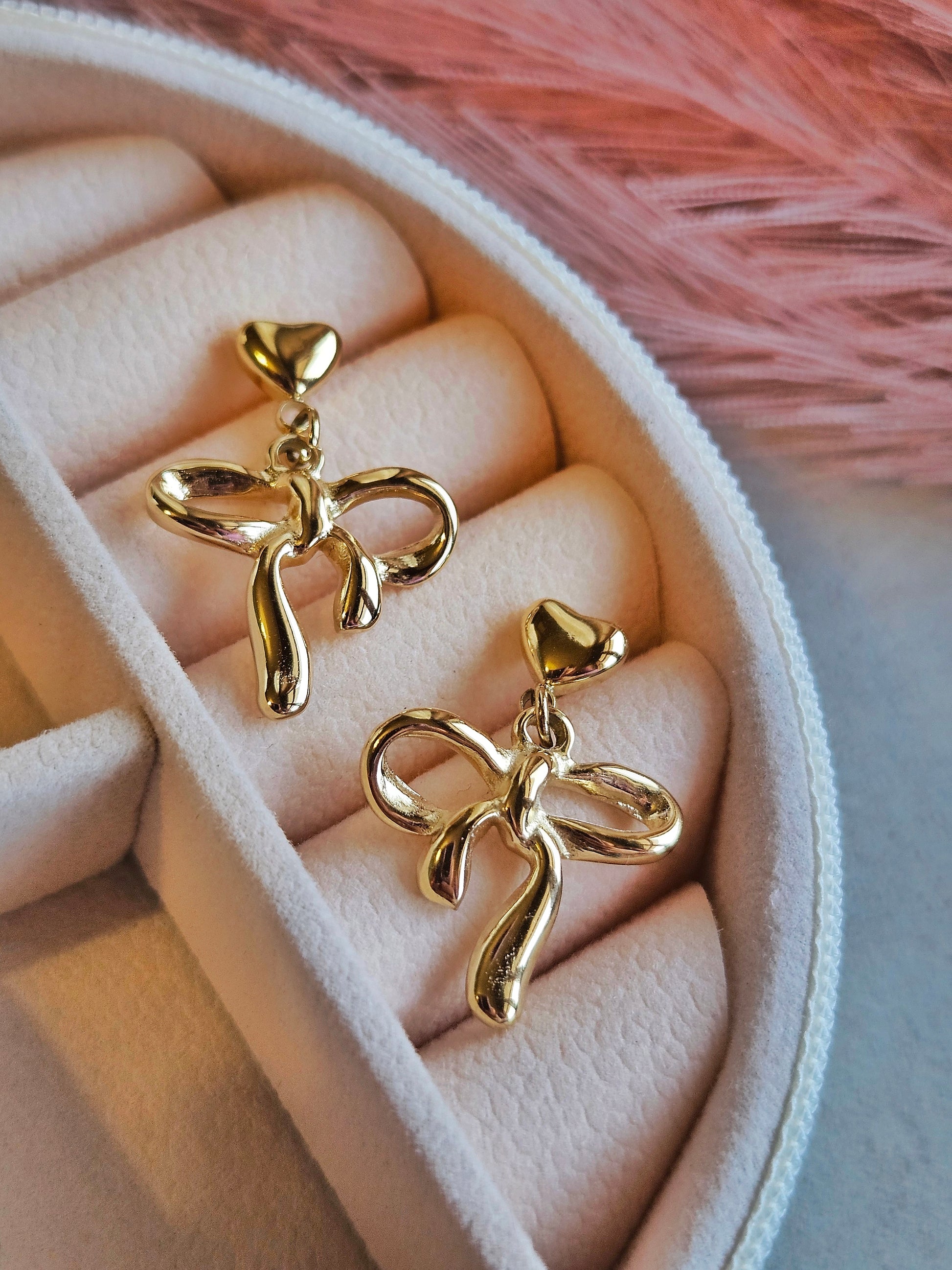 Romantici e raffinati, questi orecchini pendenti a forma di fiocco aggiungono un tocco di femminilità e leggerezza ad ogni look. Si muovono delicatamente ad ogni passo, illuminando il viso con eleganza.