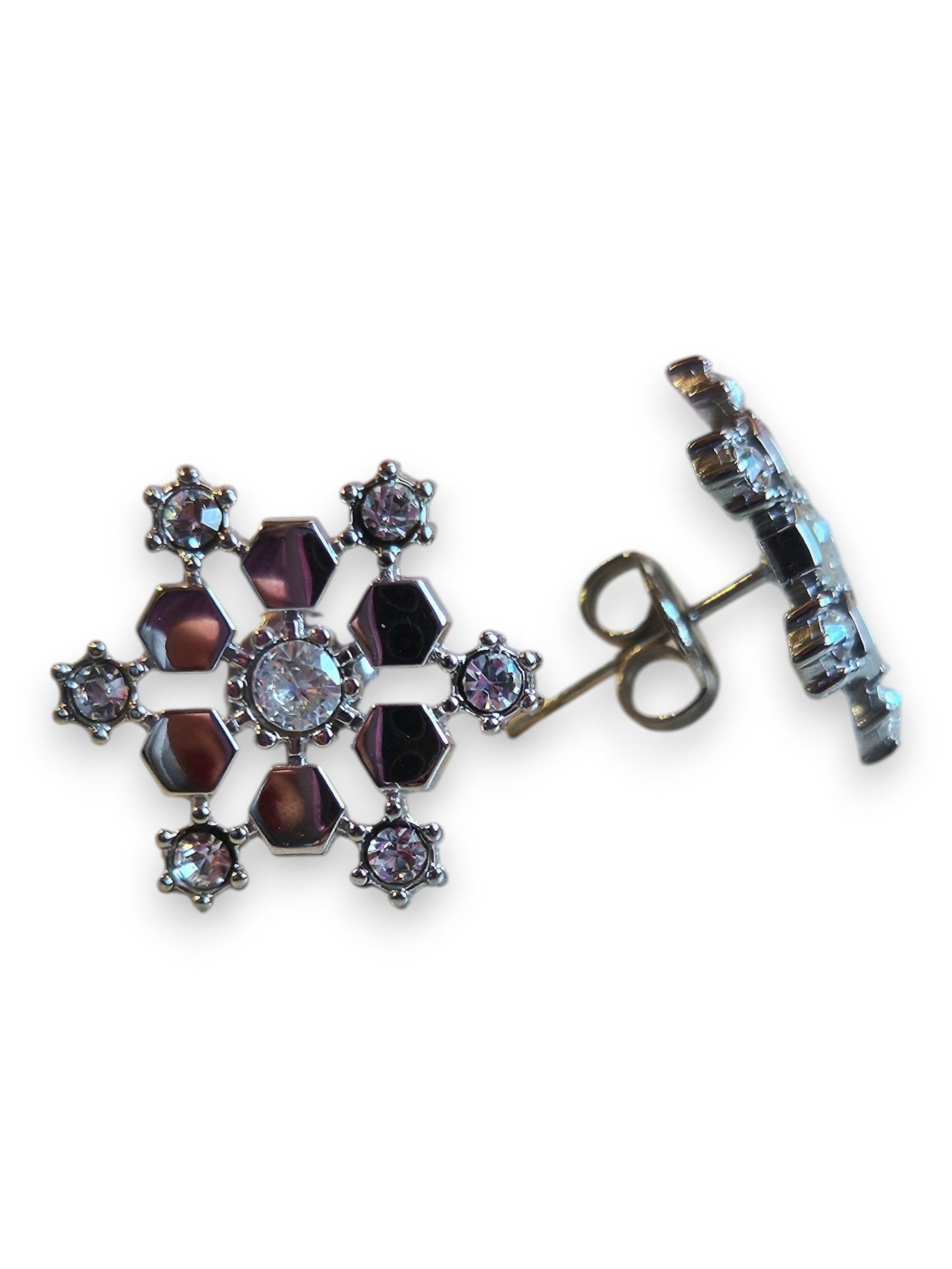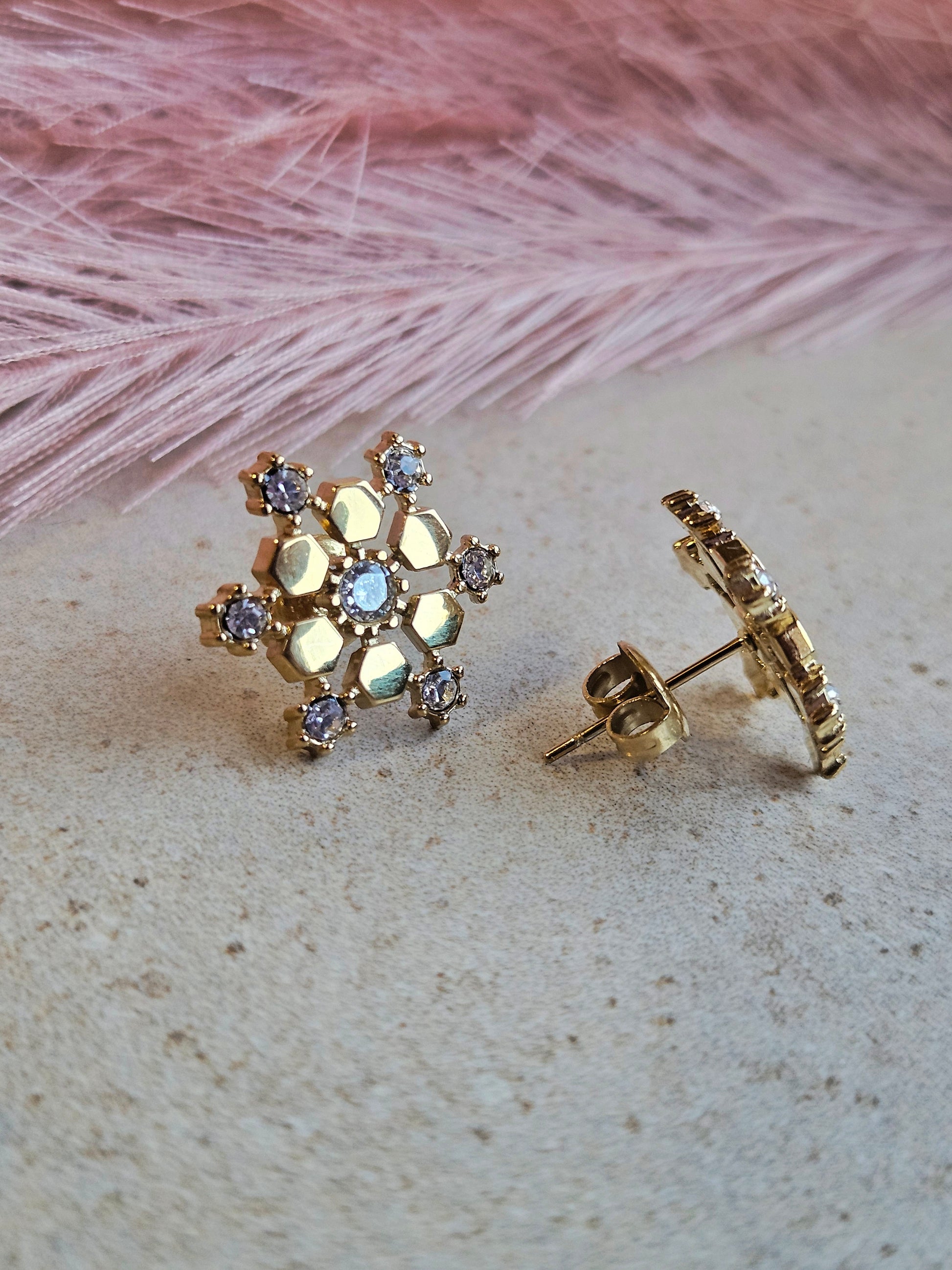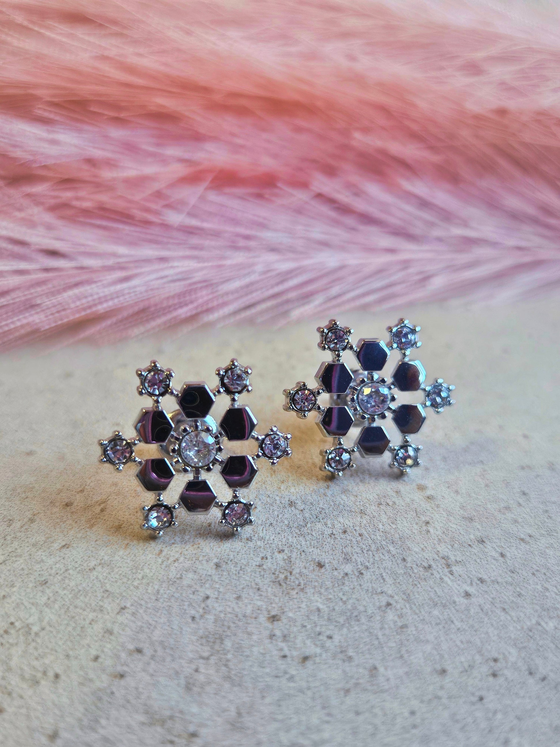 Orecchini a forma di fiocco di neve impreziositi da zirconi luminosi. Il design raffinato richiama l’eleganza invernale e dona un tocco magico e sofisticato a ogni look. Perfetti per le feste, ma anche per impreziosire outfit quotidiani con luce e originalità.