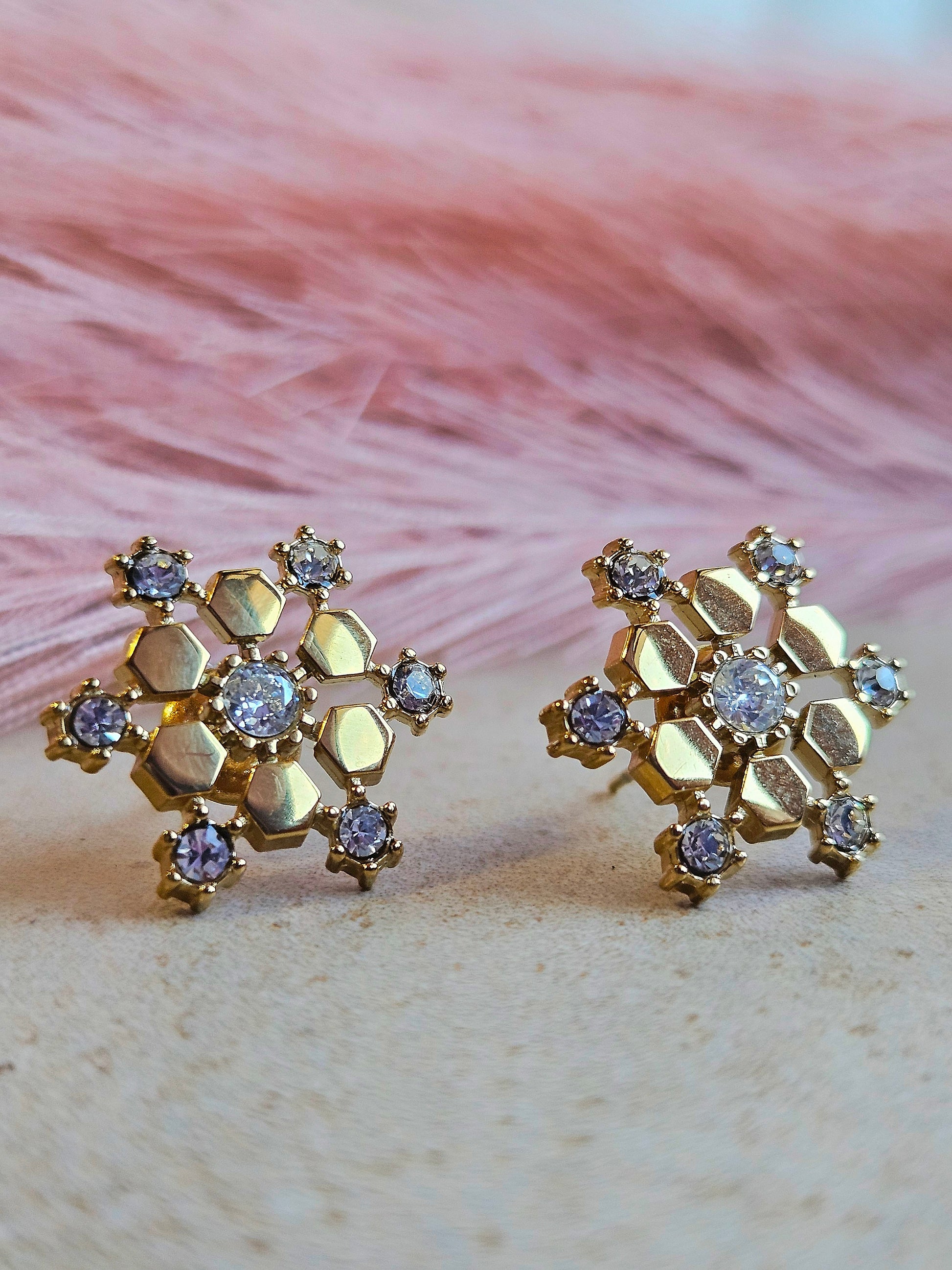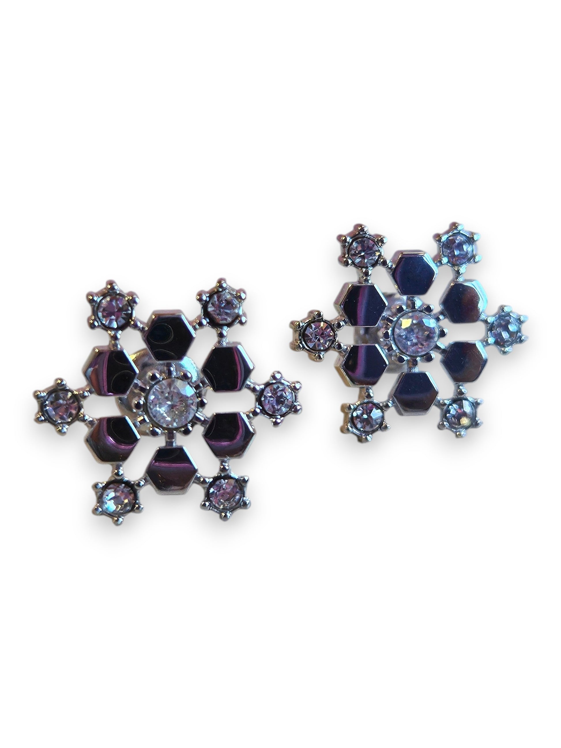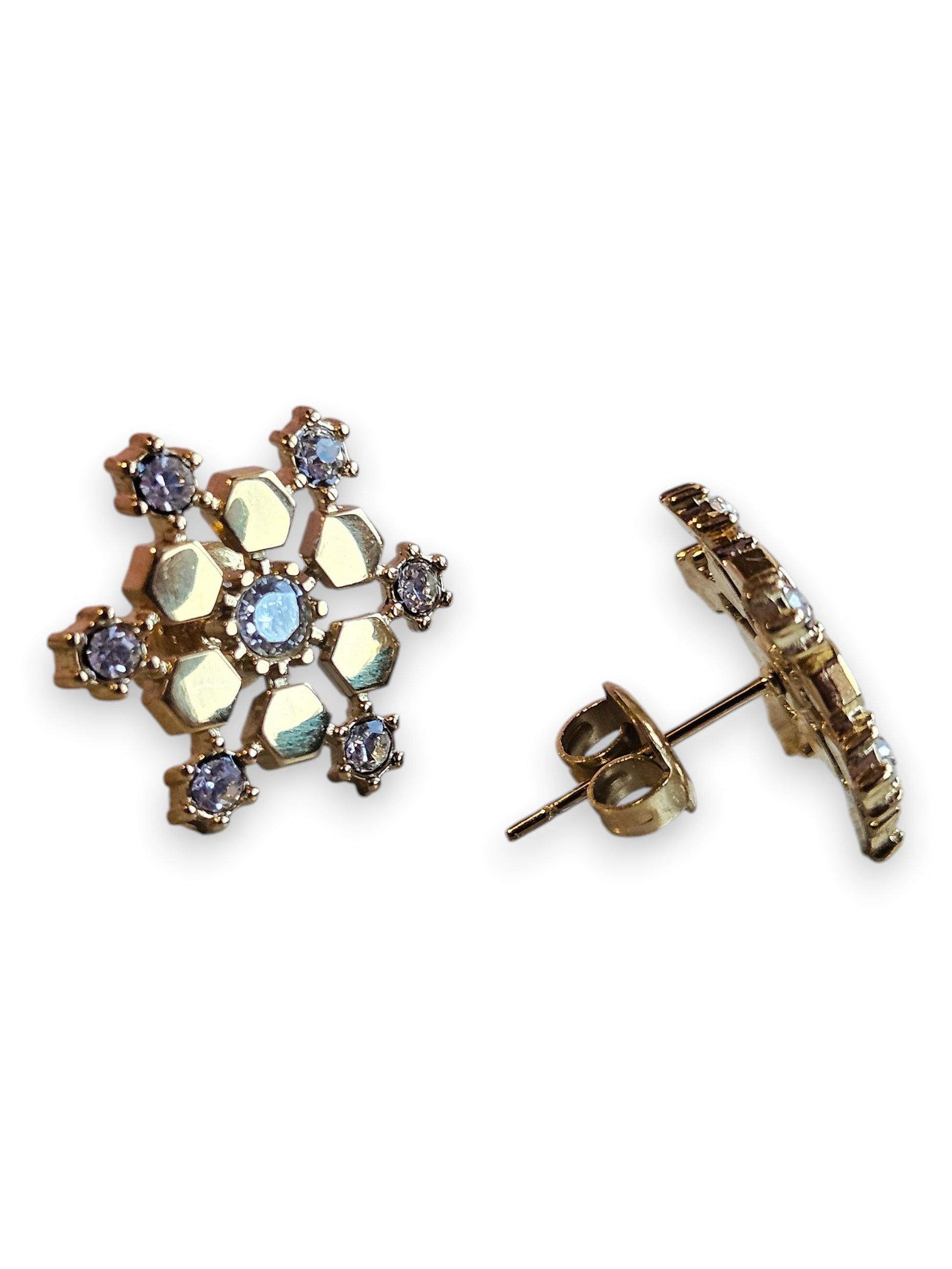Orecchini a forma di fiocco di neve impreziositi da zirconi luminosi. Il design raffinato richiama l’eleganza invernale e dona un tocco magico e sofisticato a ogni look. Perfetti per le feste, ma anche per impreziosire outfit quotidiani con luce e originalità.