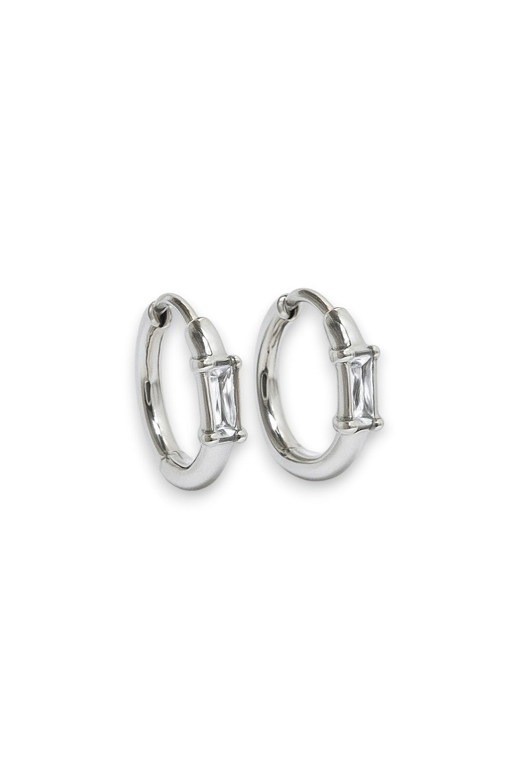 Questi mini hoop con baguette centrale regalano un punto luce moderno e raffinato senza risultare eccessivi. Leggeri, comodi e versatili, stanno benissimo sia da soli che abbinati ad altri orecchini per un look più ricco. L’acciaio li rende resistenti e adatti all’uso quotidiano.