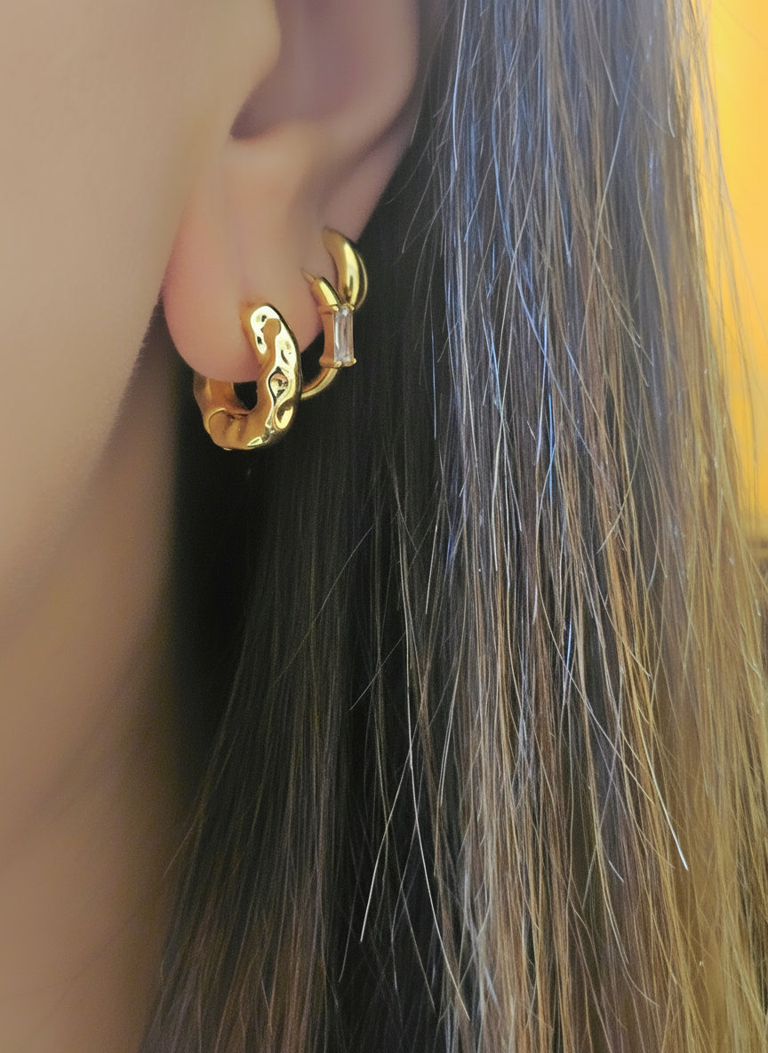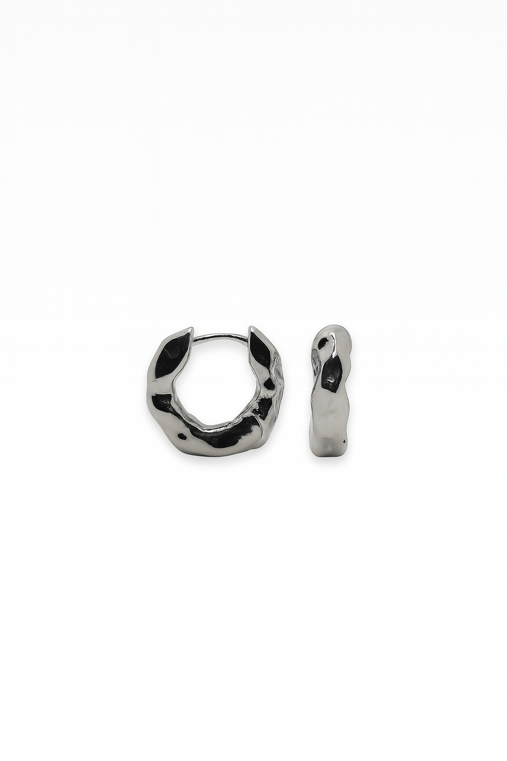 Orecchini a cerchio dal design irregolare e superficie martellata, per uno stile moderno e sofisticato.