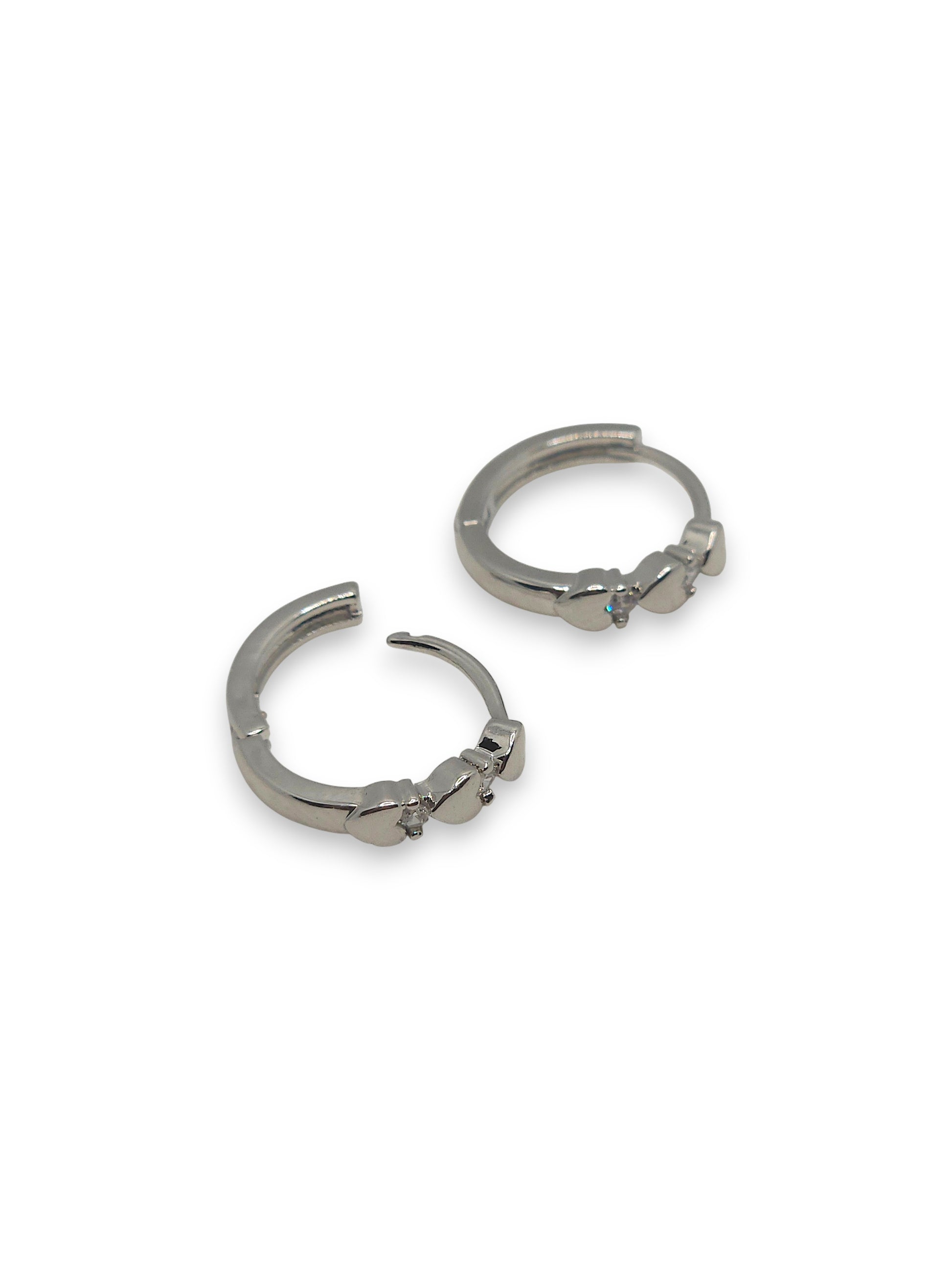 Orecchini a cerchio in acciaio inox con piccoli cuori alternati a zirconi luminosi.