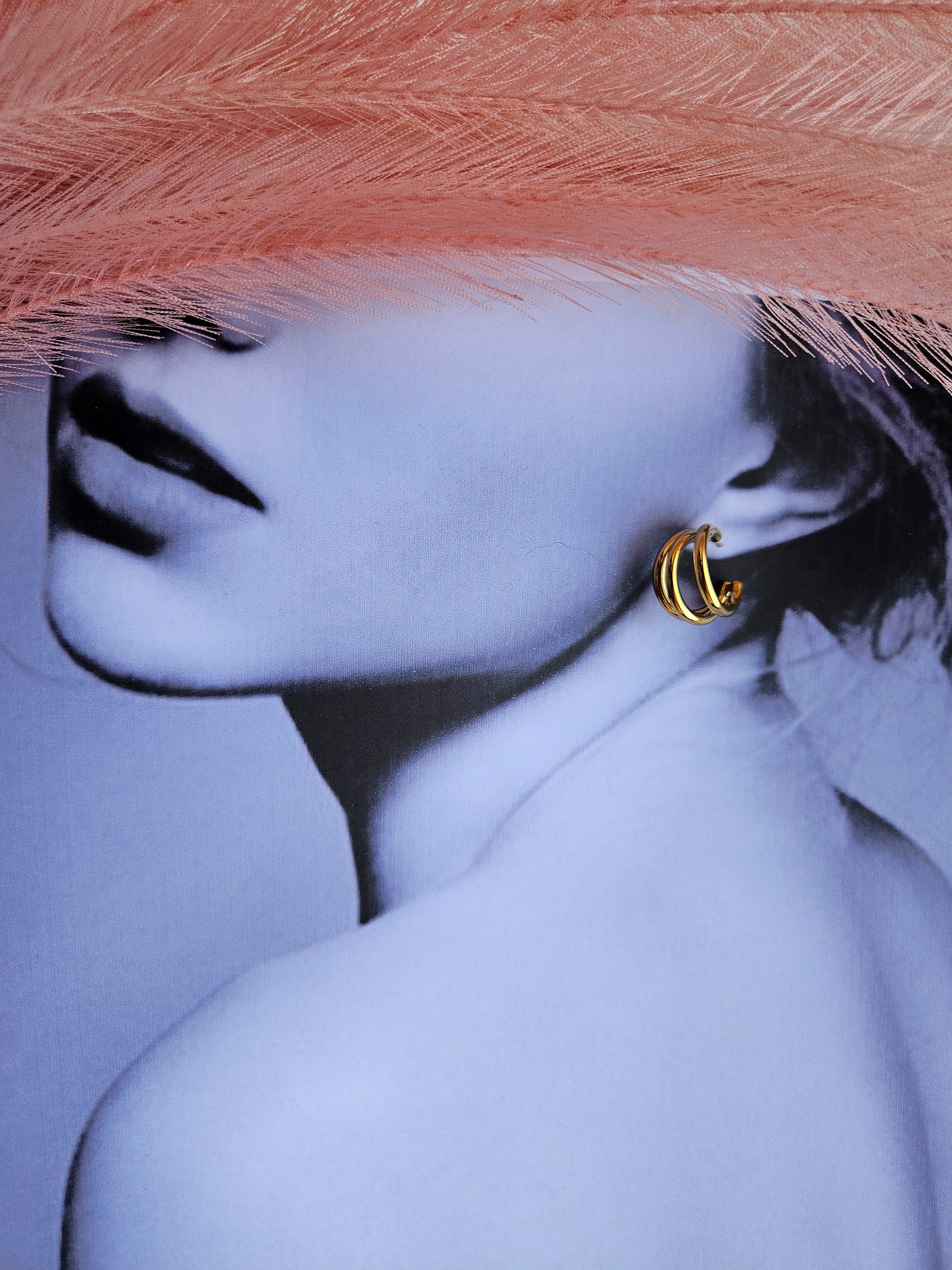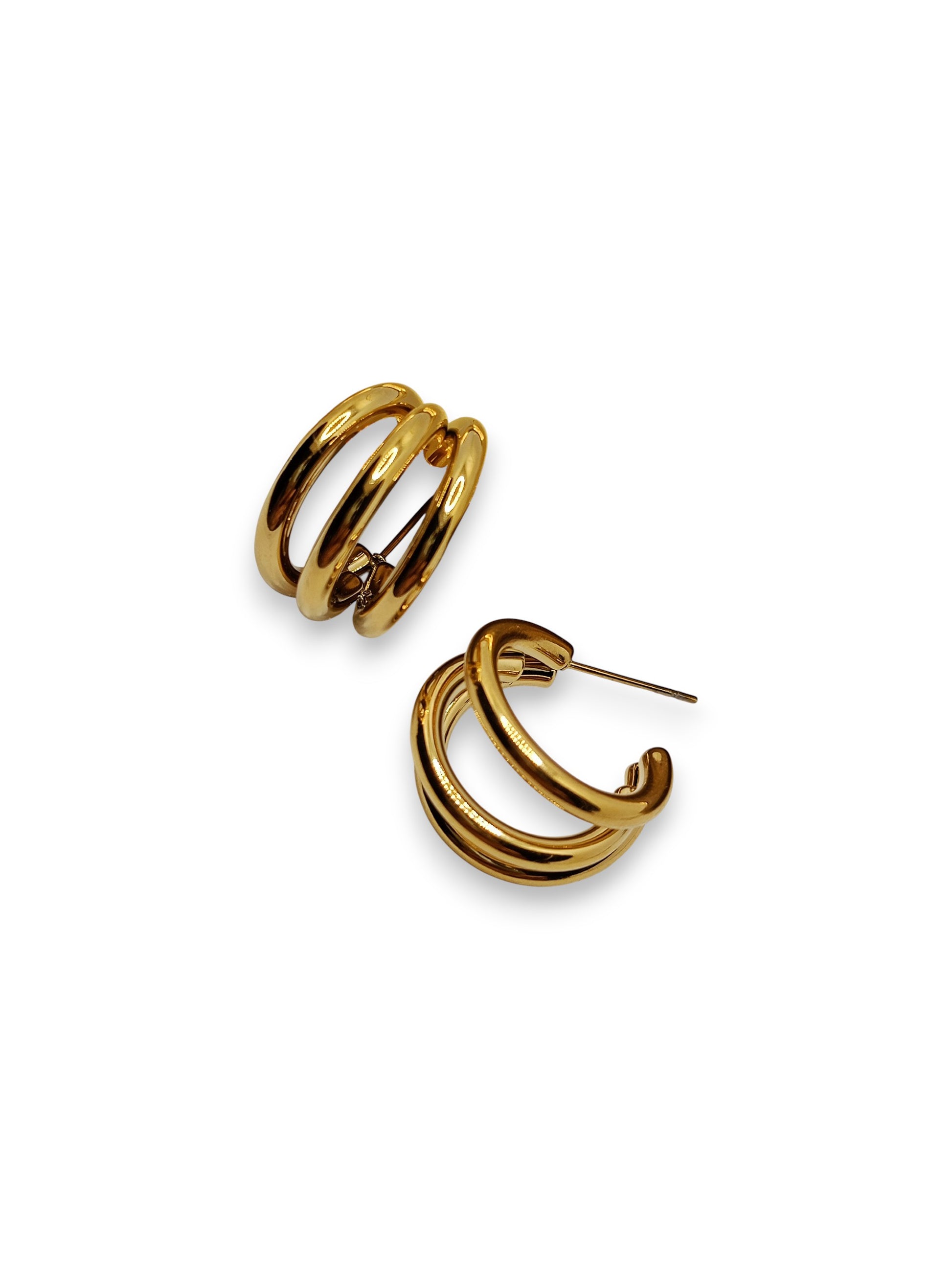 Orecchini composti da tre anelli intrecciati che creano un effetto volume elegante e contemporaneo. Perfetti per chi cerca un gioiello raffinato, ideale sia per il giorno che per la sera.