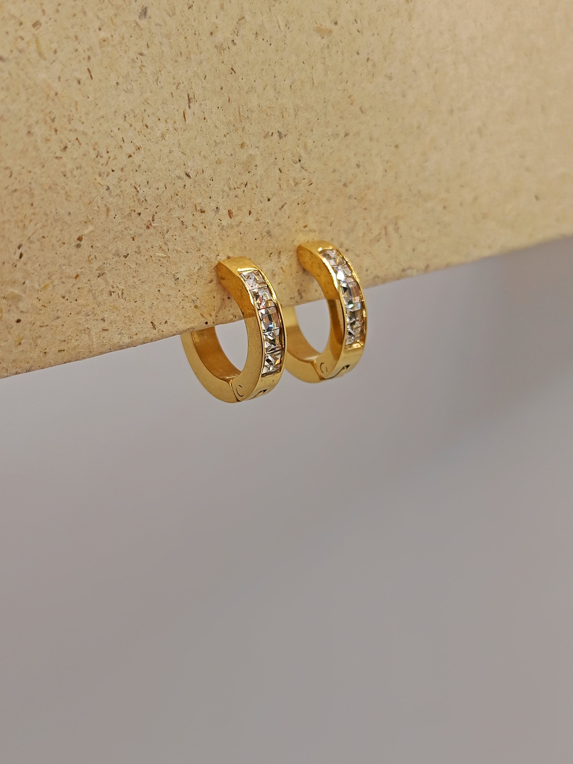 Hoop eleganti impreziositi da zirconi incassati a taglio quadrato. Raffinati e luminosi, sono ideali per chi desidera un gioiello discreto ma con un dettaglio prezioso. Perfetti da soli o abbinati ad altri modelli per creare giochi di luce.