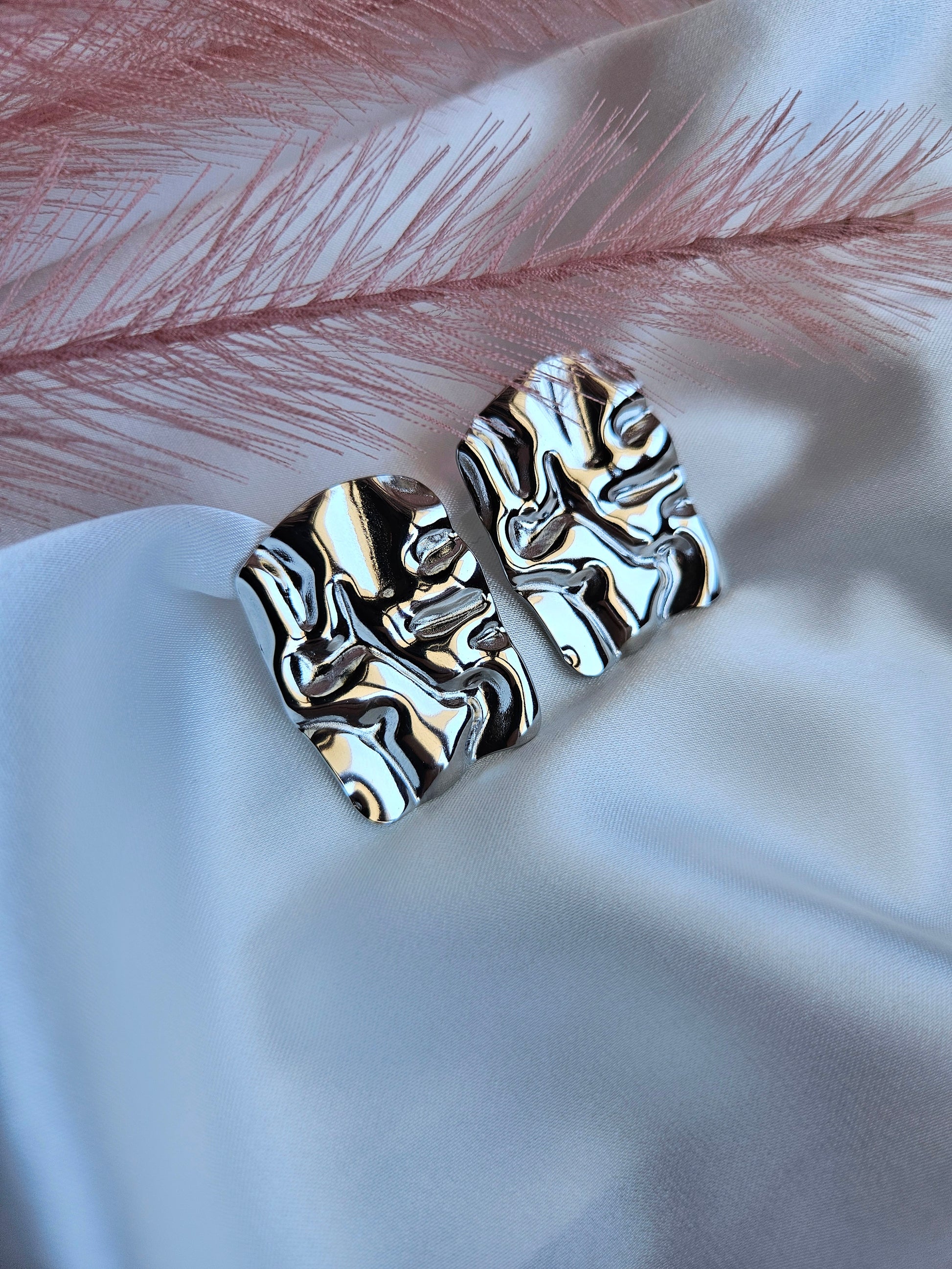 Raffinati orecchini a placca effetto martellato. Leggeri ma d’impatto, aggiungono un tocco di carattere e contemporaneità al look. Resistenti, anallergici e ideali per un uso quotidiano.