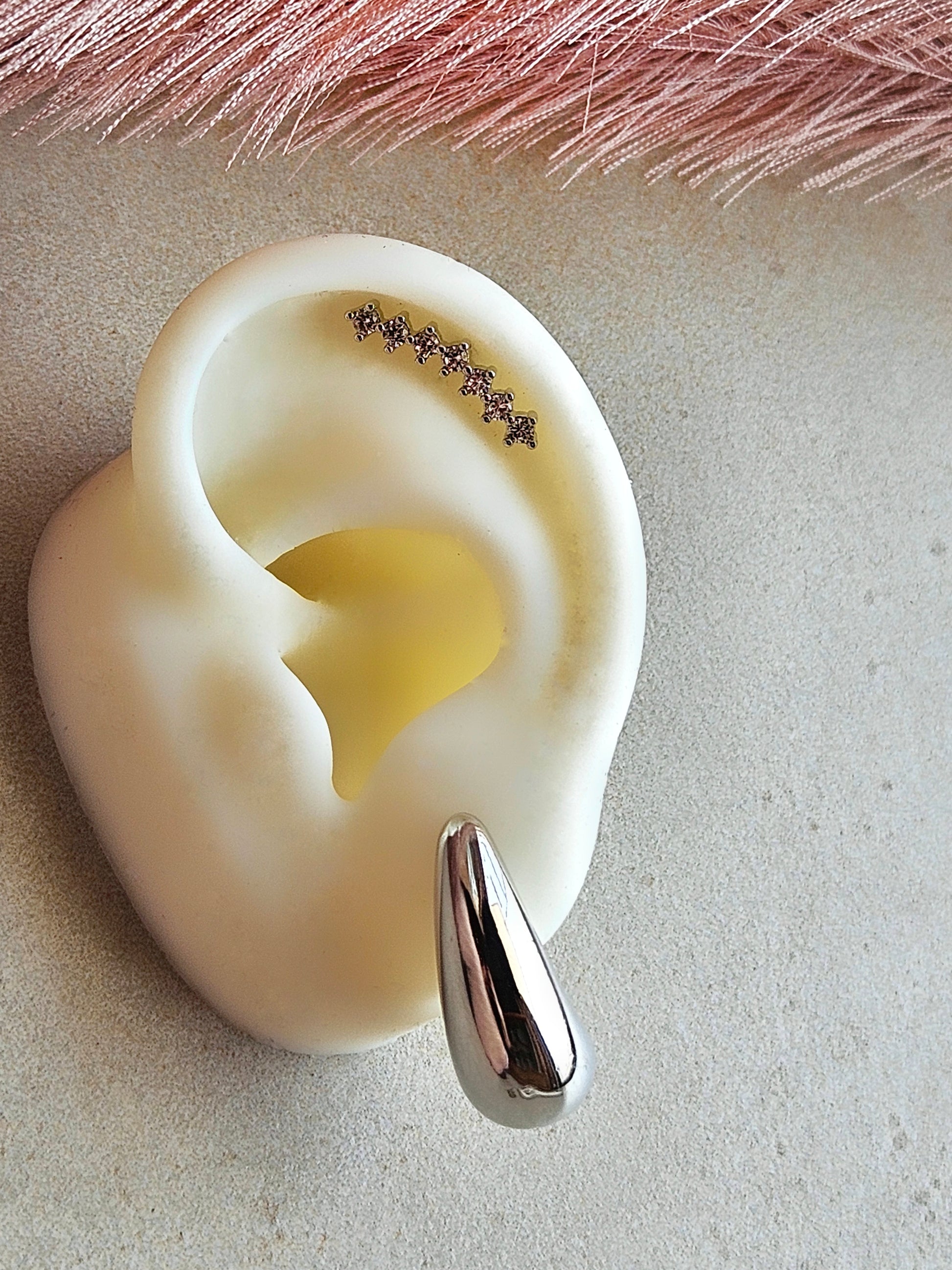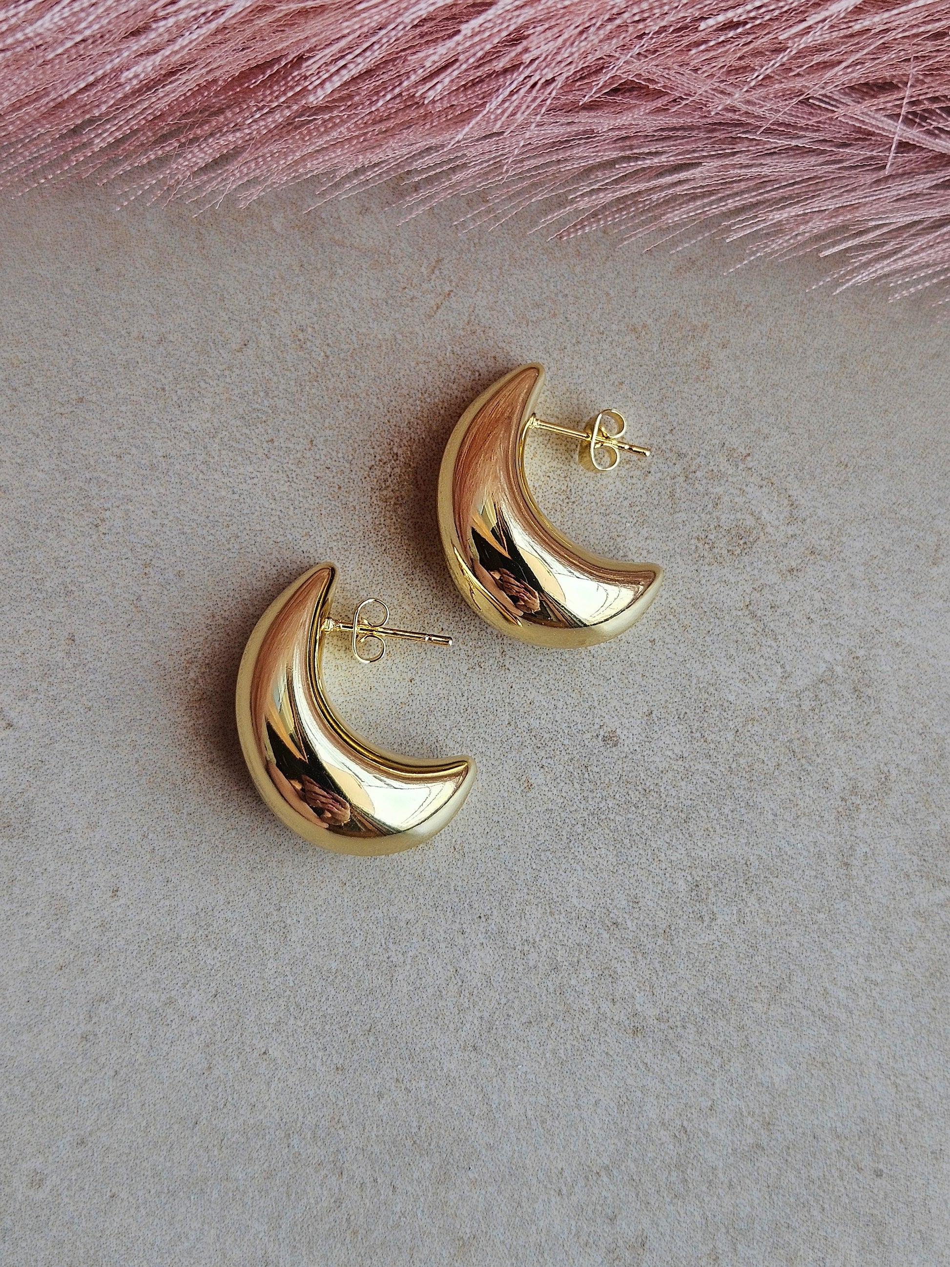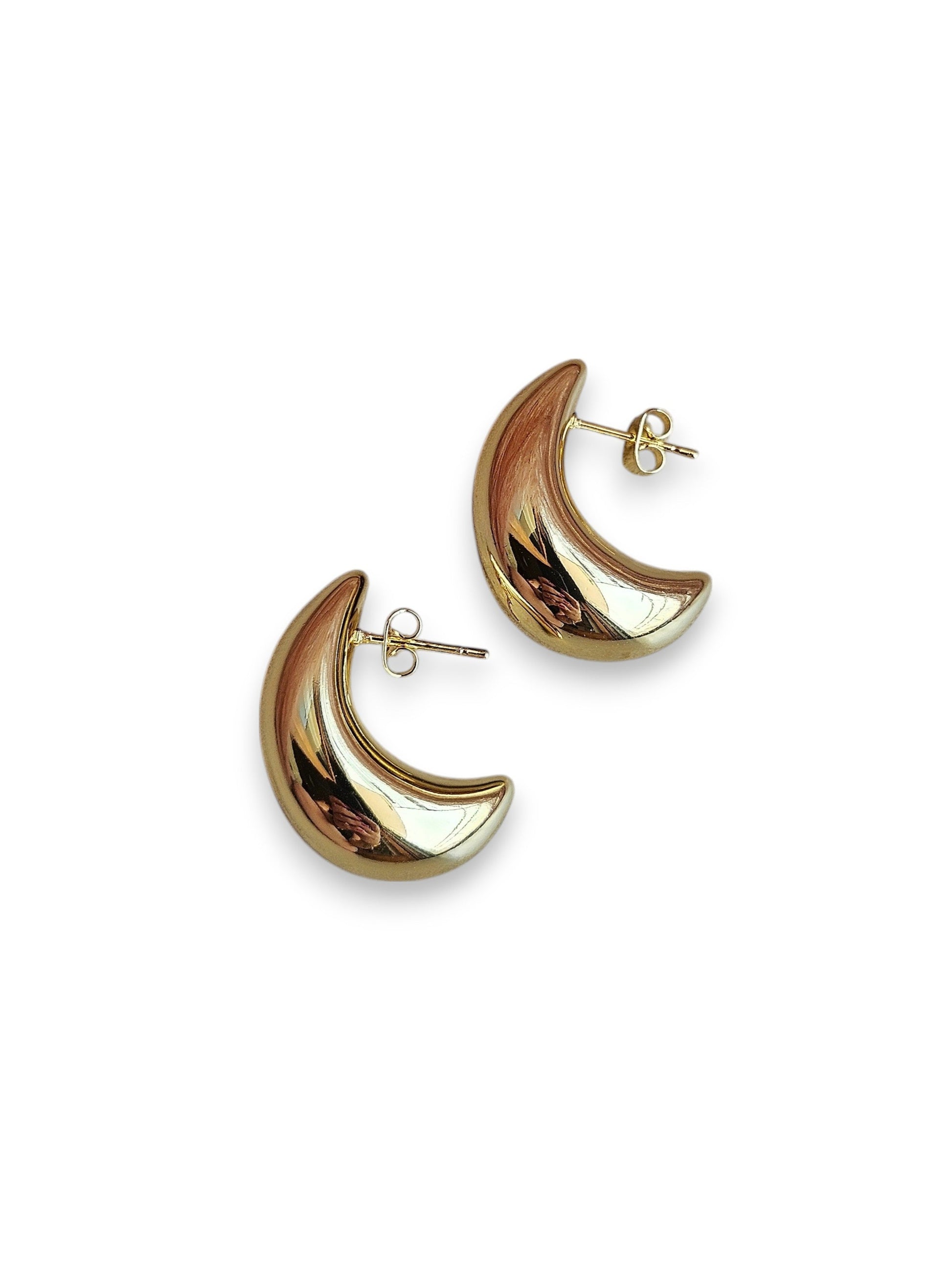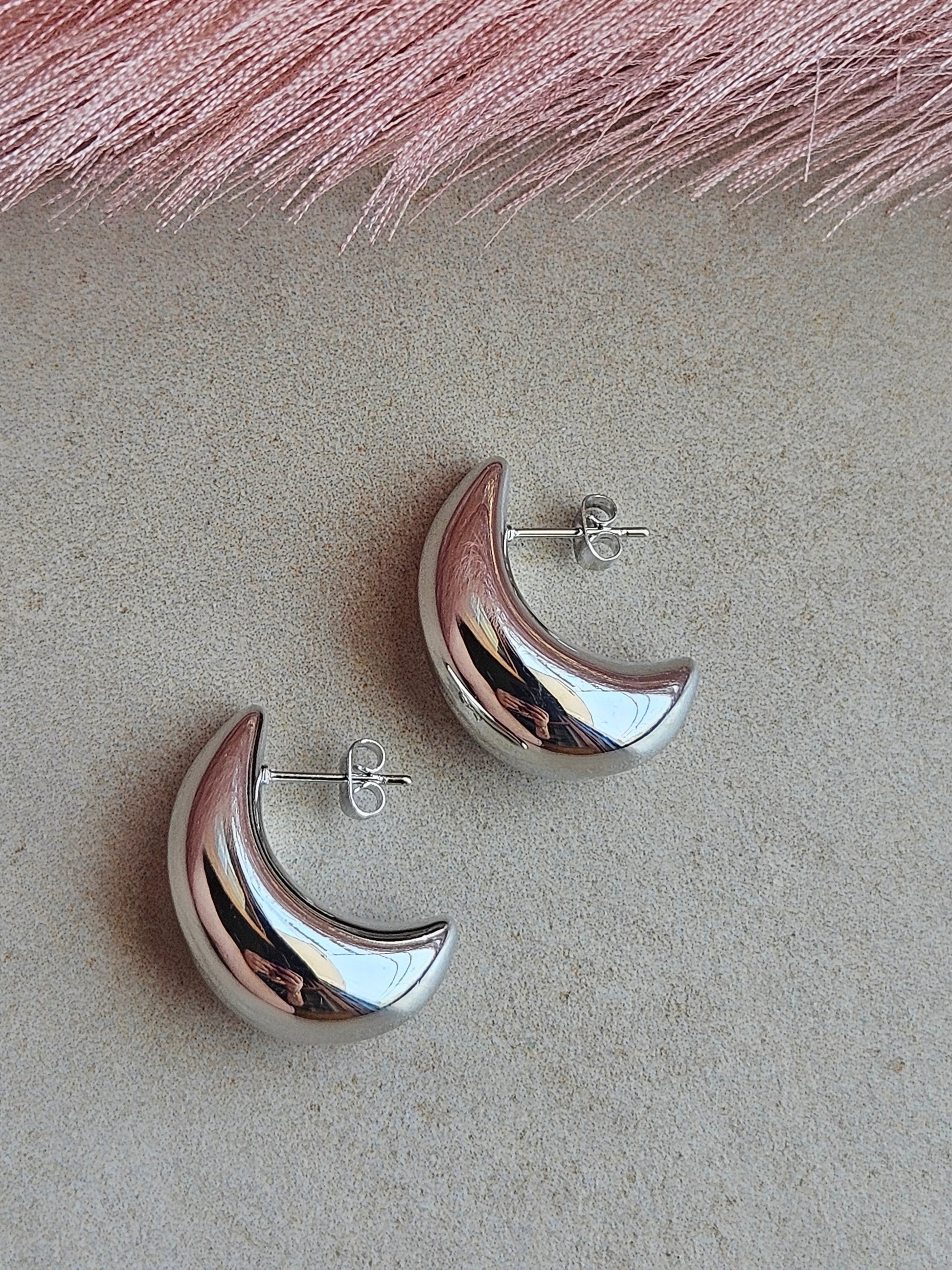 Raffinati orecchini a mezza luna in acciaio inox, dal design morbido e sinuoso che richiama le forme lunari. Perfetti per valorizzare il viso con un accessorio elegante, resistente e comodo da indossare ogni giorno.