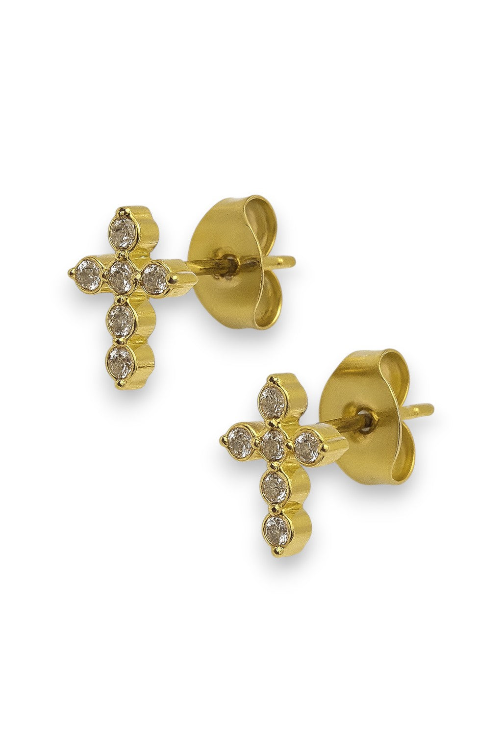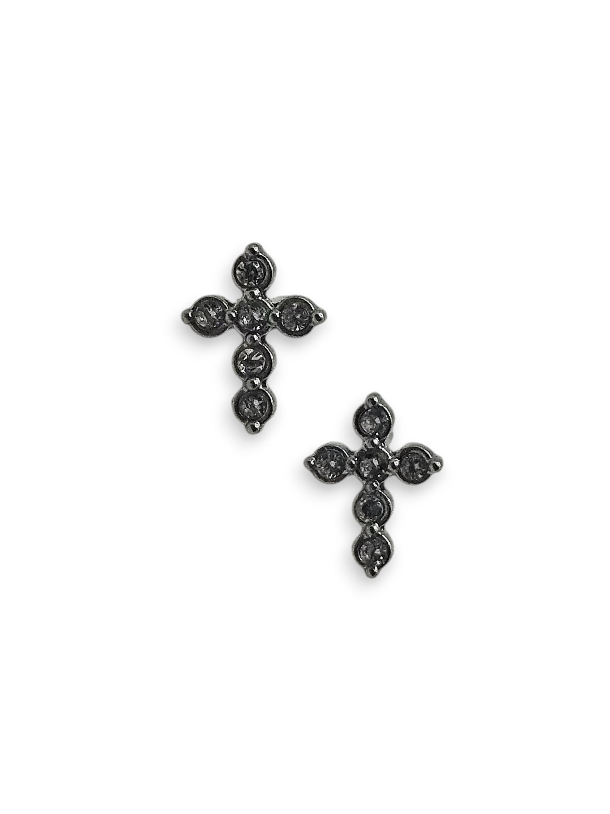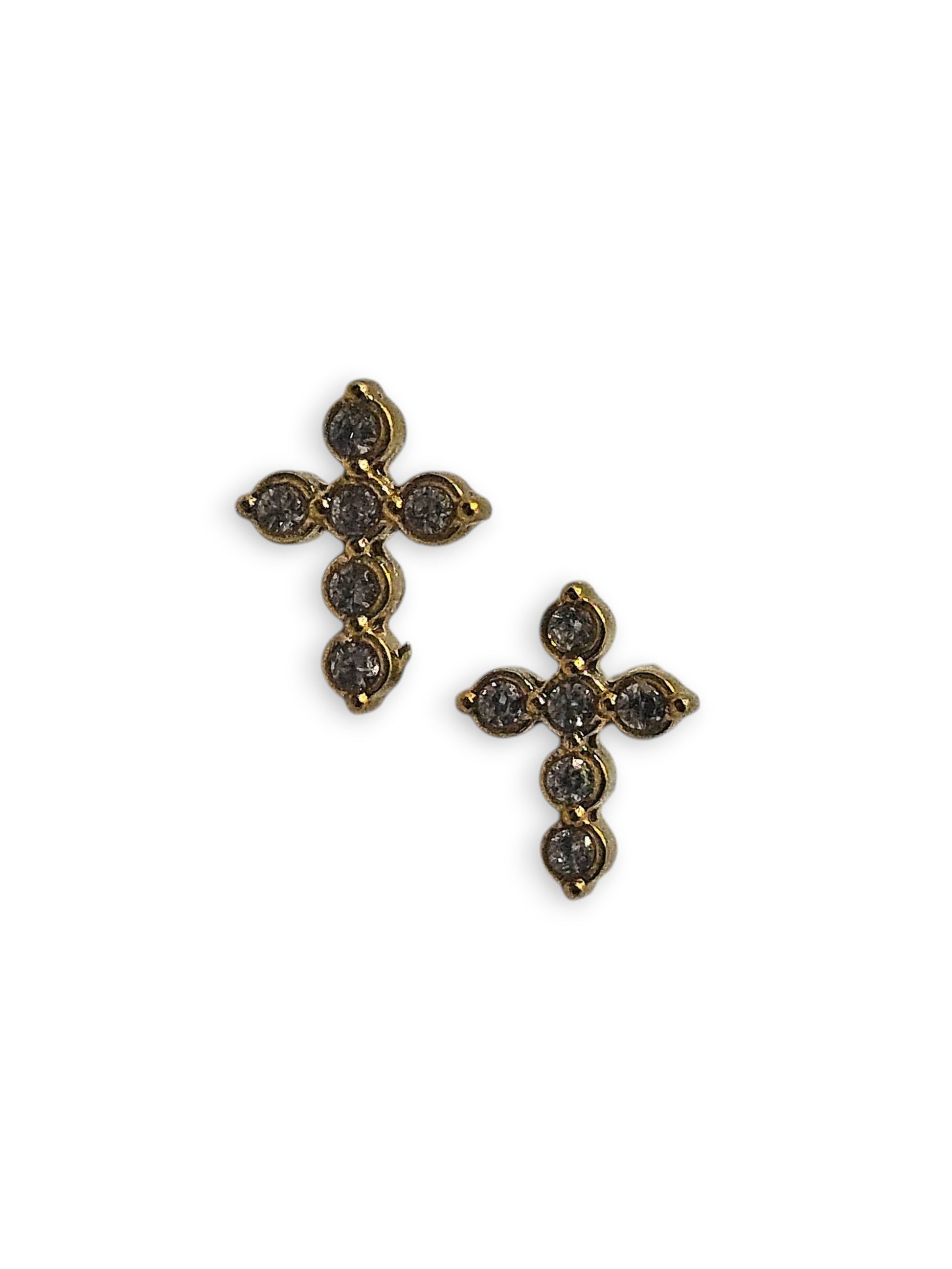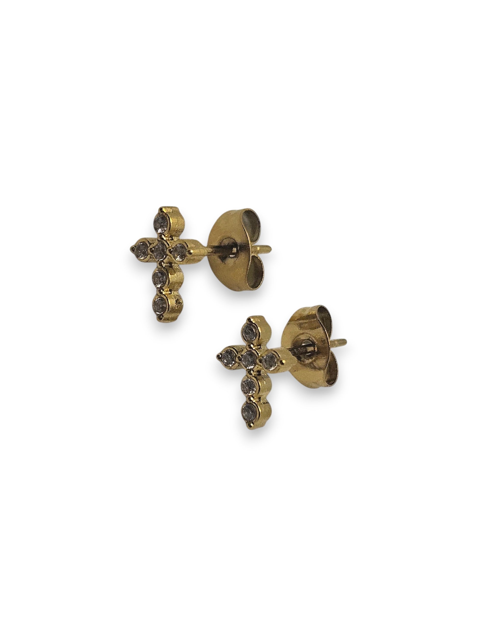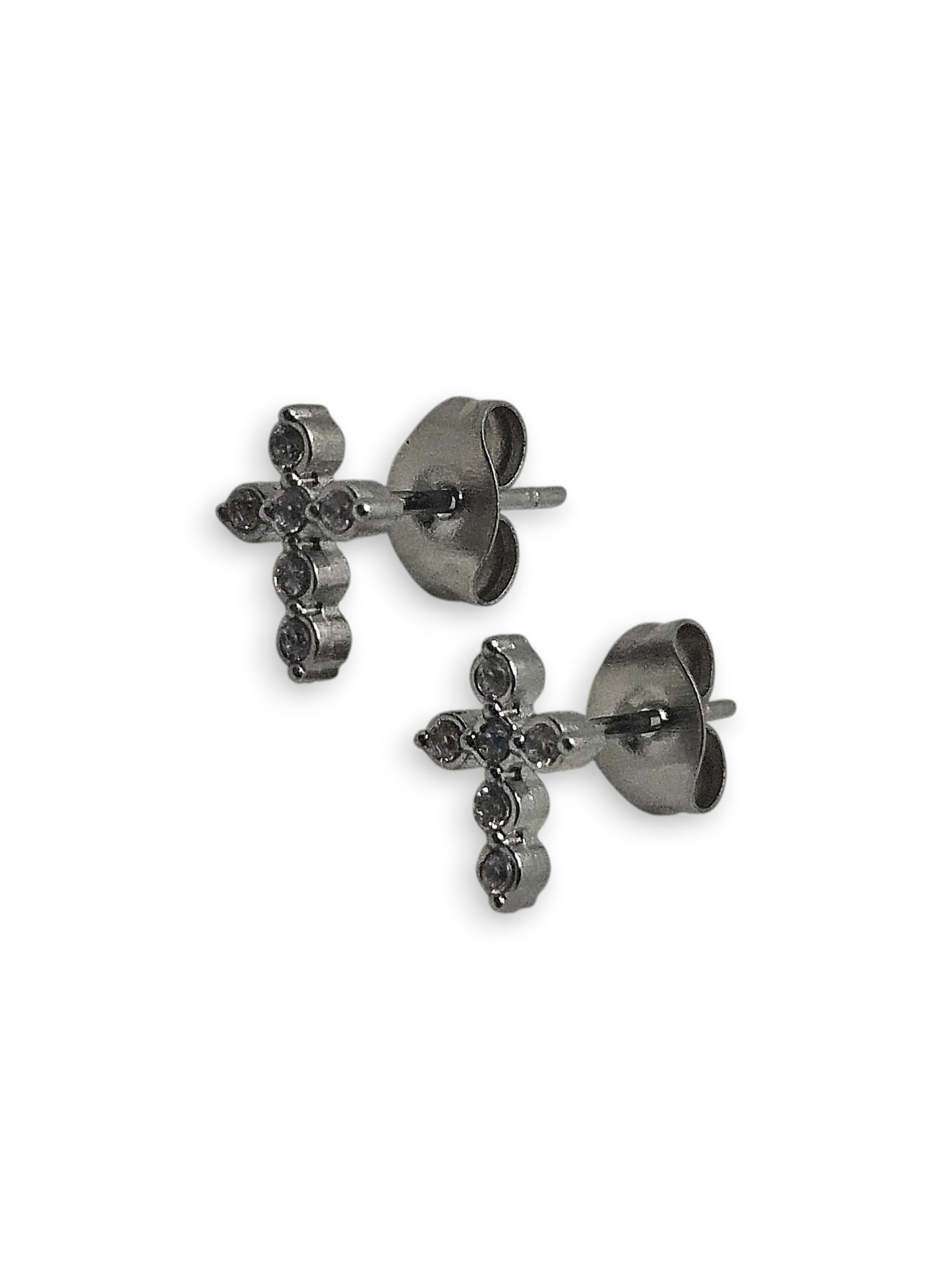 Orecchini a lobo in acciaio con croce di piccoli zirconi luminosi. Stile intramontabile che unisce minimalismo e spiritualità, perfetto da indossare ogni giorno o per aggiungere un dettaglio luminoso a combo più ricercate ed eleganti.