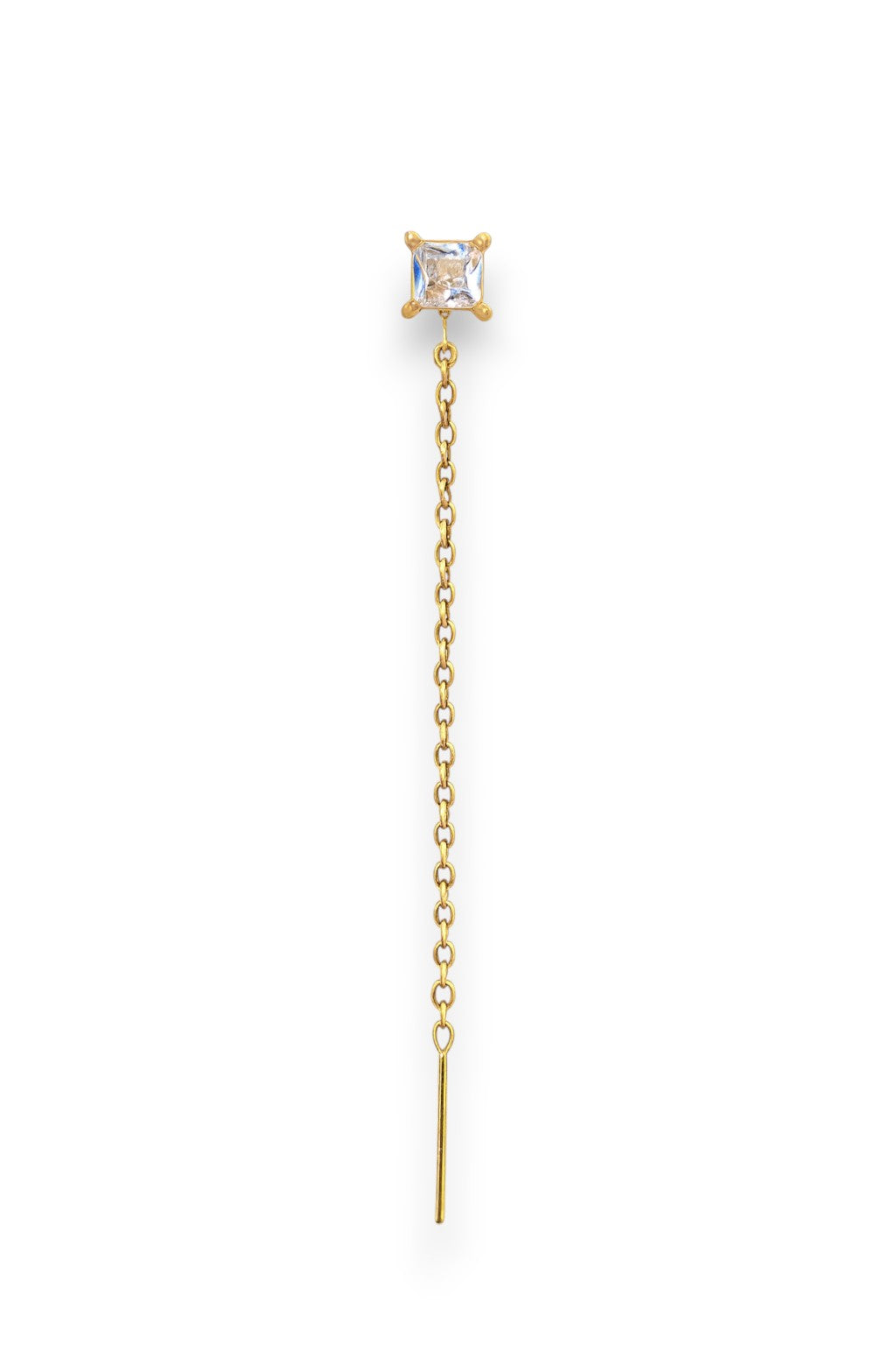 In questo set trovi l’orecchino a lobo con zircone quadrato già incluso, insieme alla catenina pendente intercambiabile che si aggancia direttamente alla farfallina posteriore.