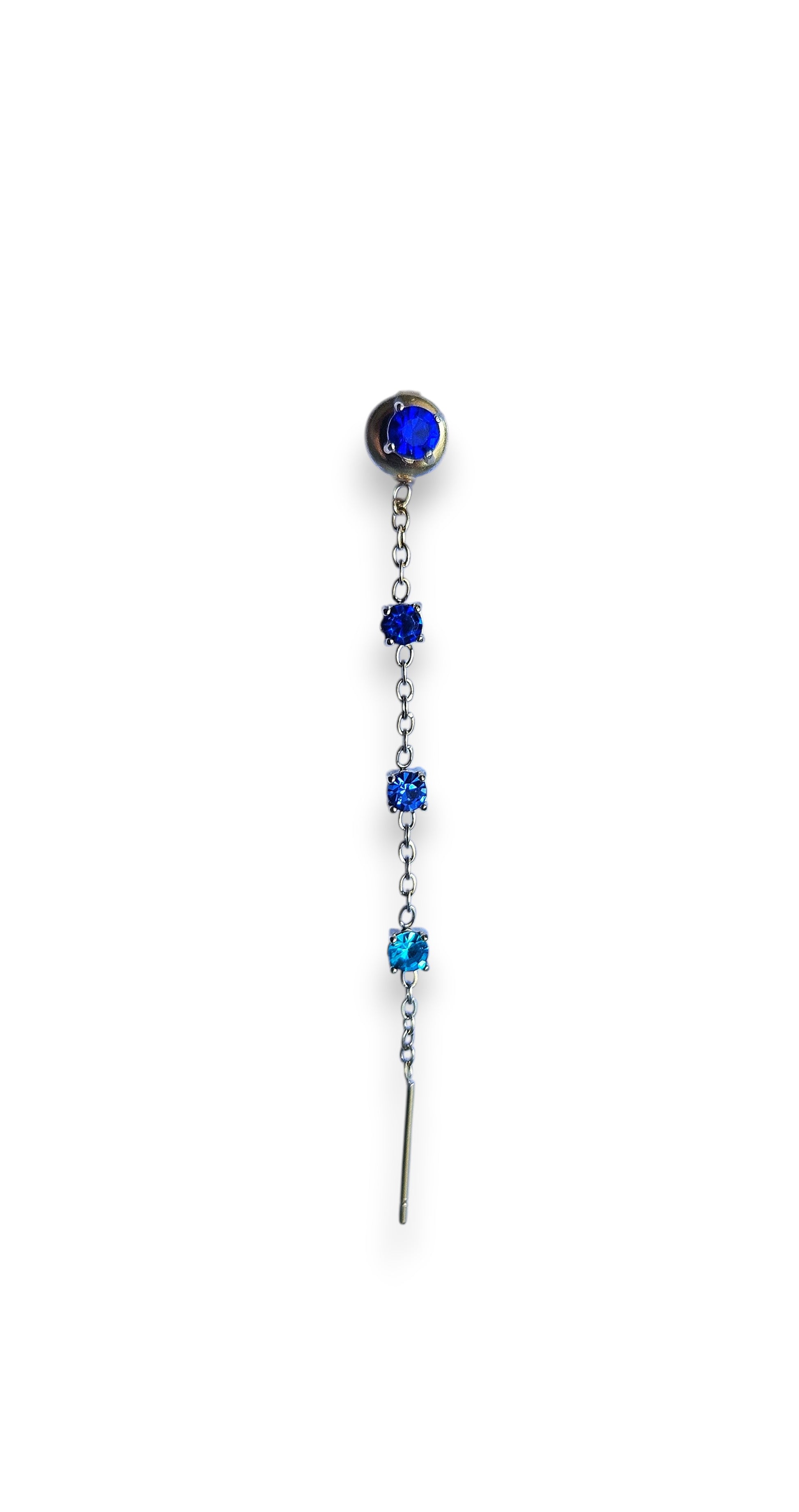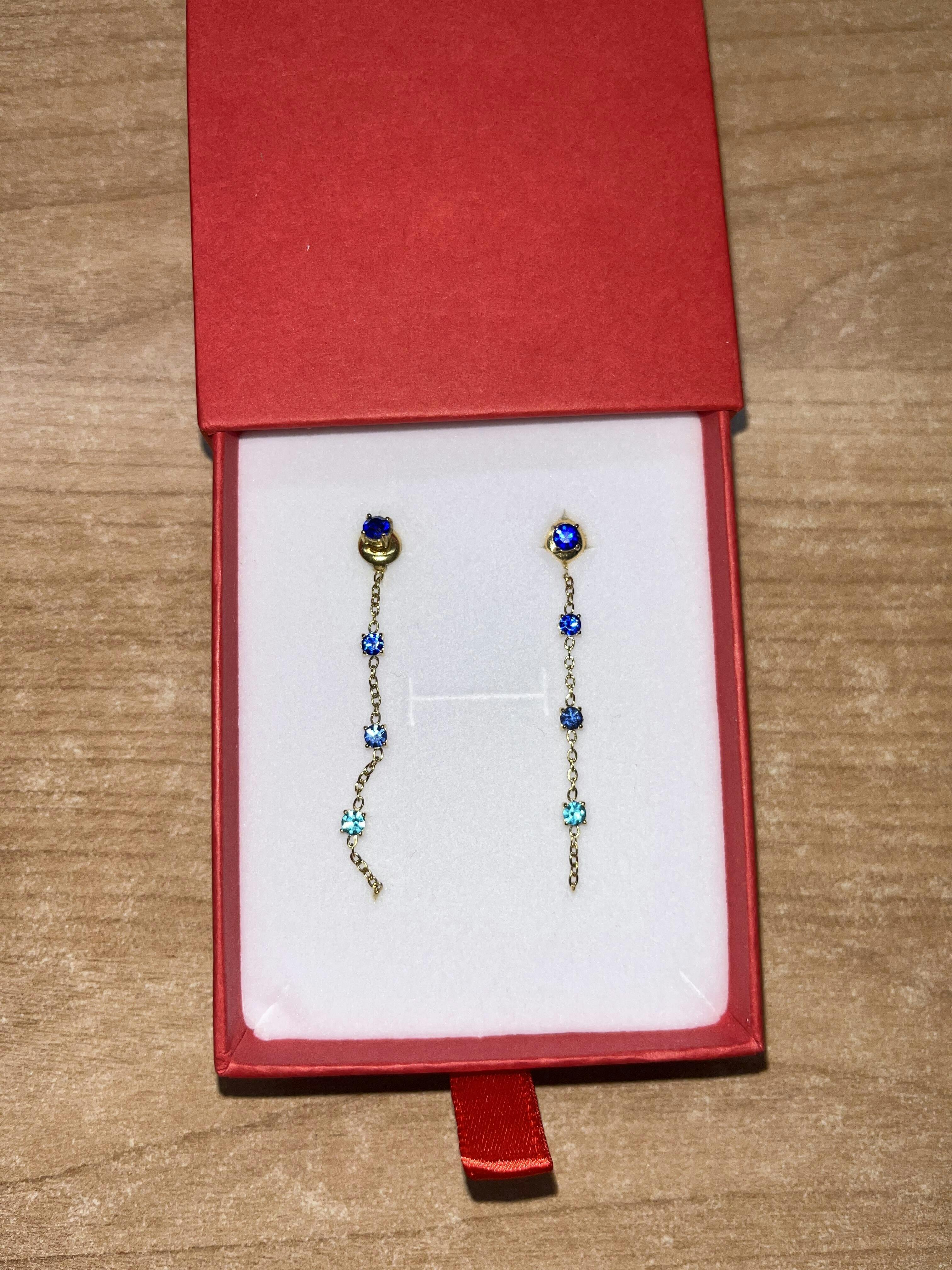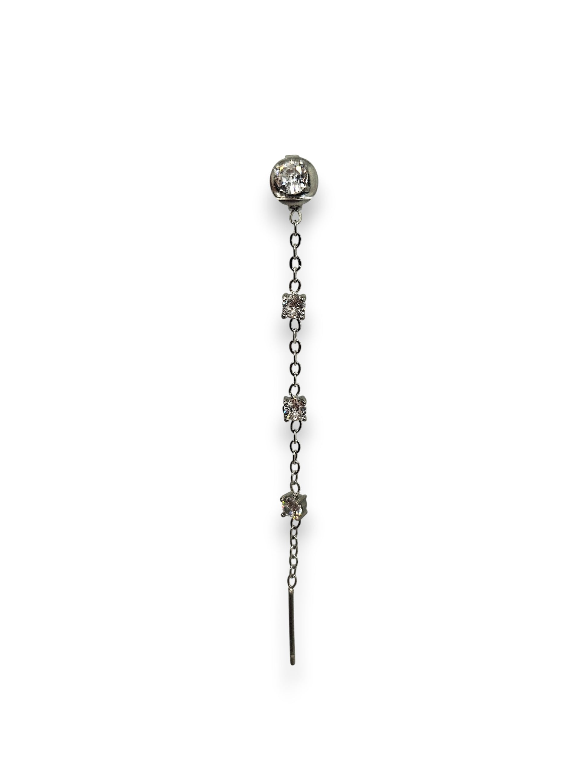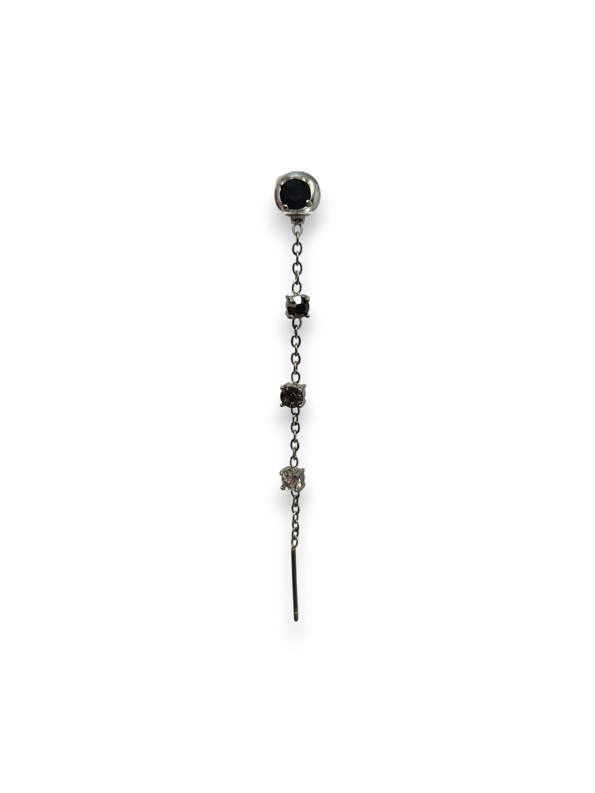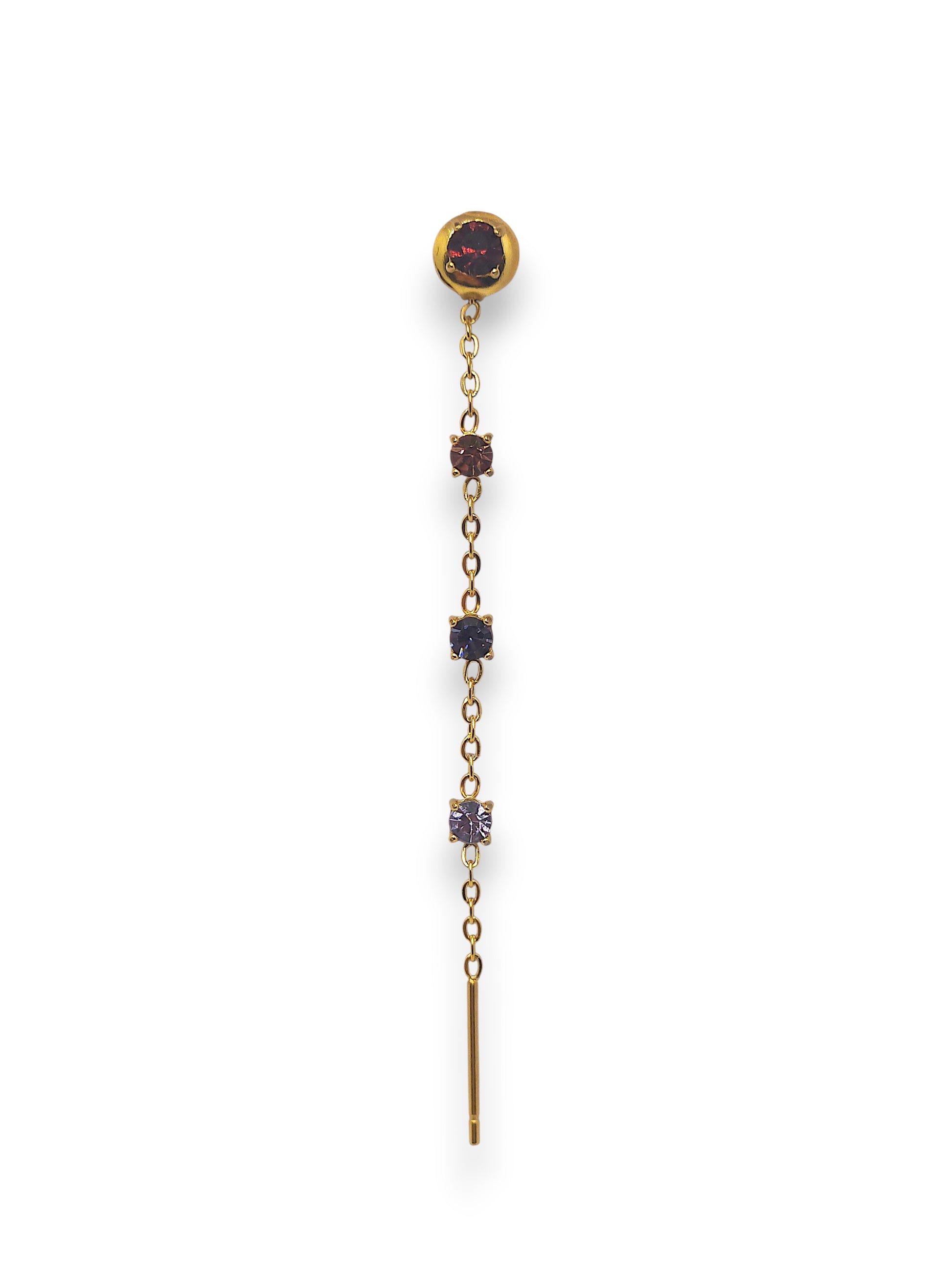 Orecchino in acciaio inossidabile con pendente a catena e zirconi colorati. Il design asimmetrico e la combinazione di cristalli di diverse sfumature regalano un tocco raffinato ma originale a qualsiasi look.