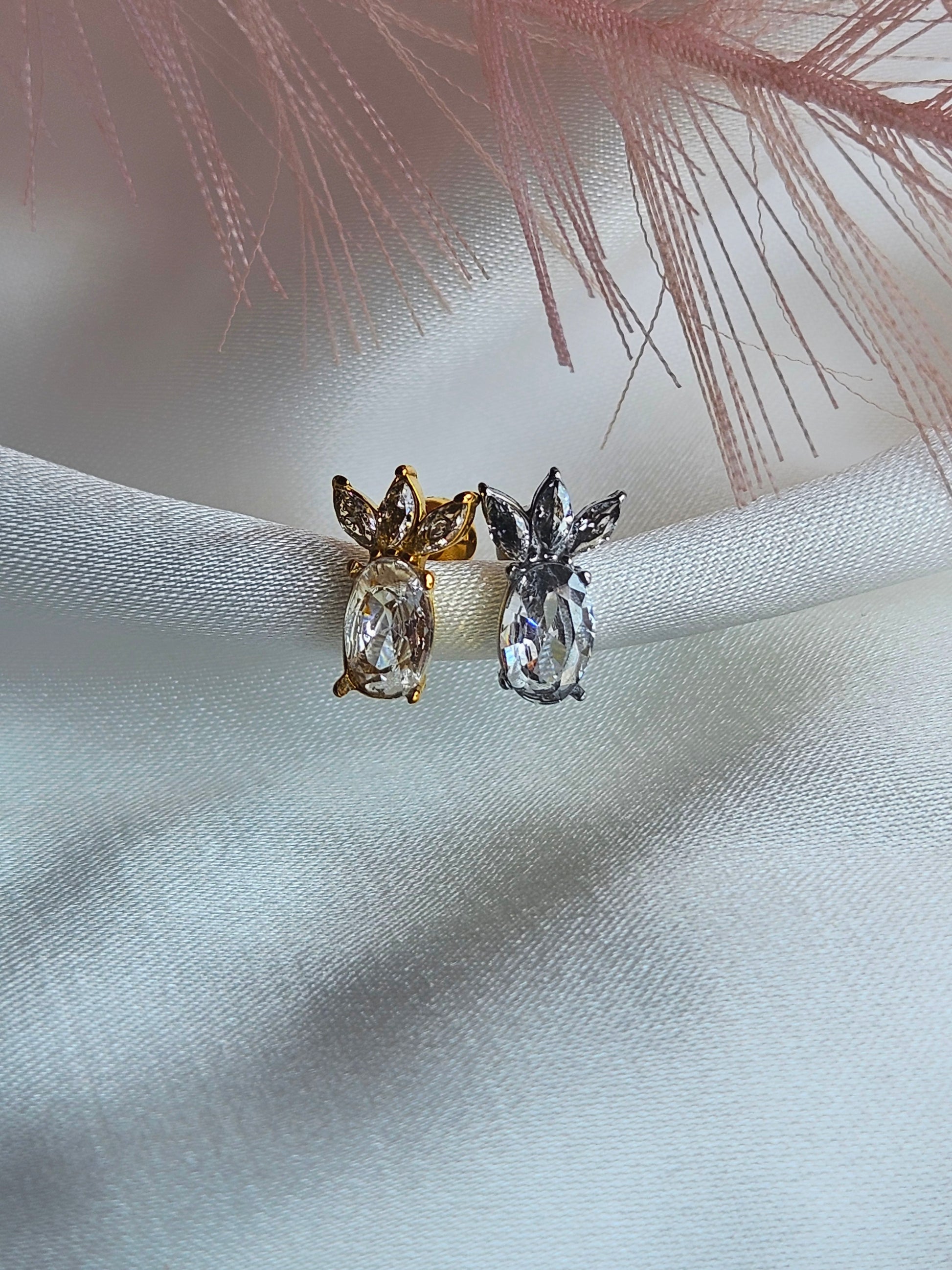 Un modello giocoso a forma di ananas e luminoso con pietra centrale e petali scintillanti.