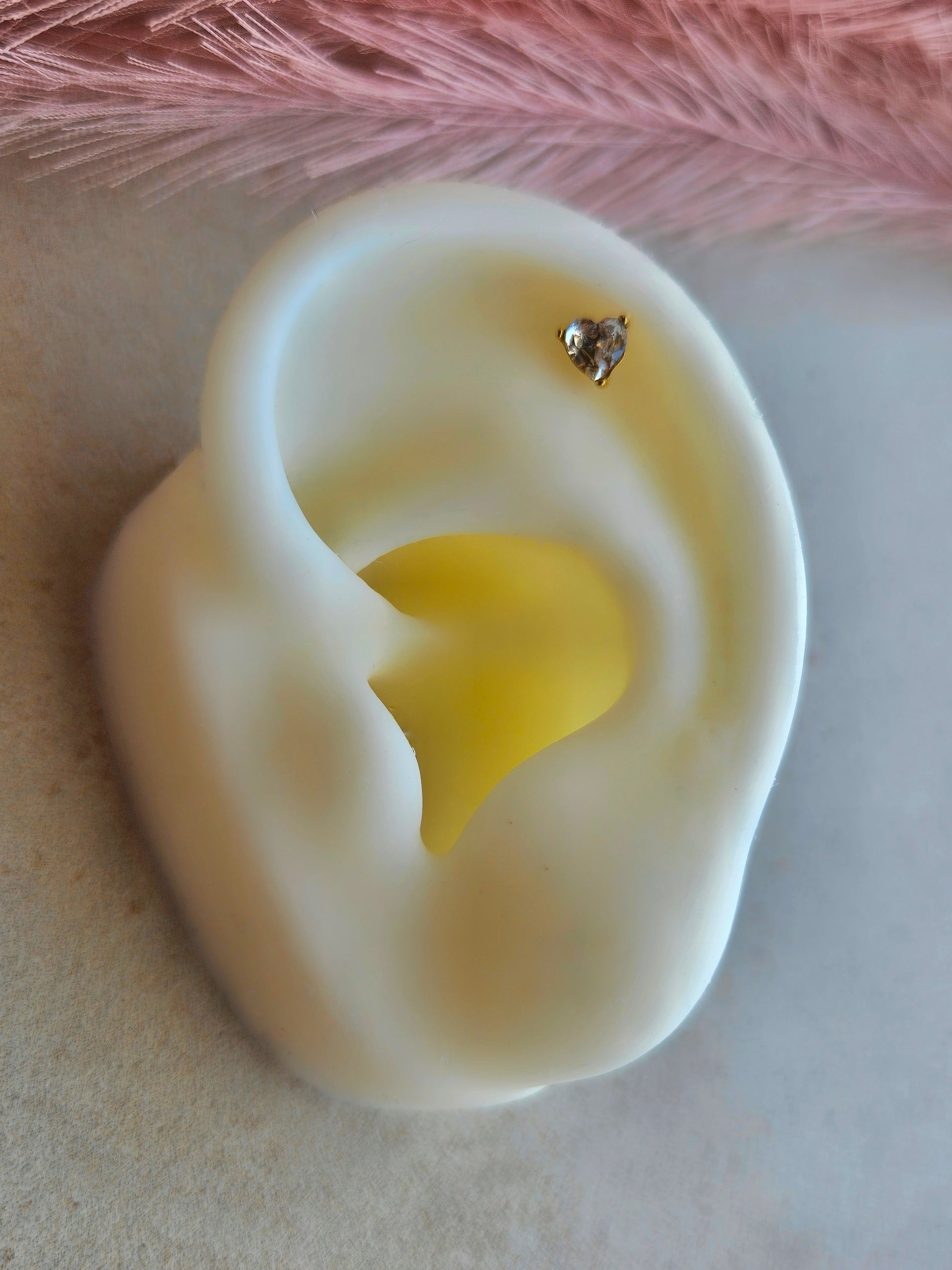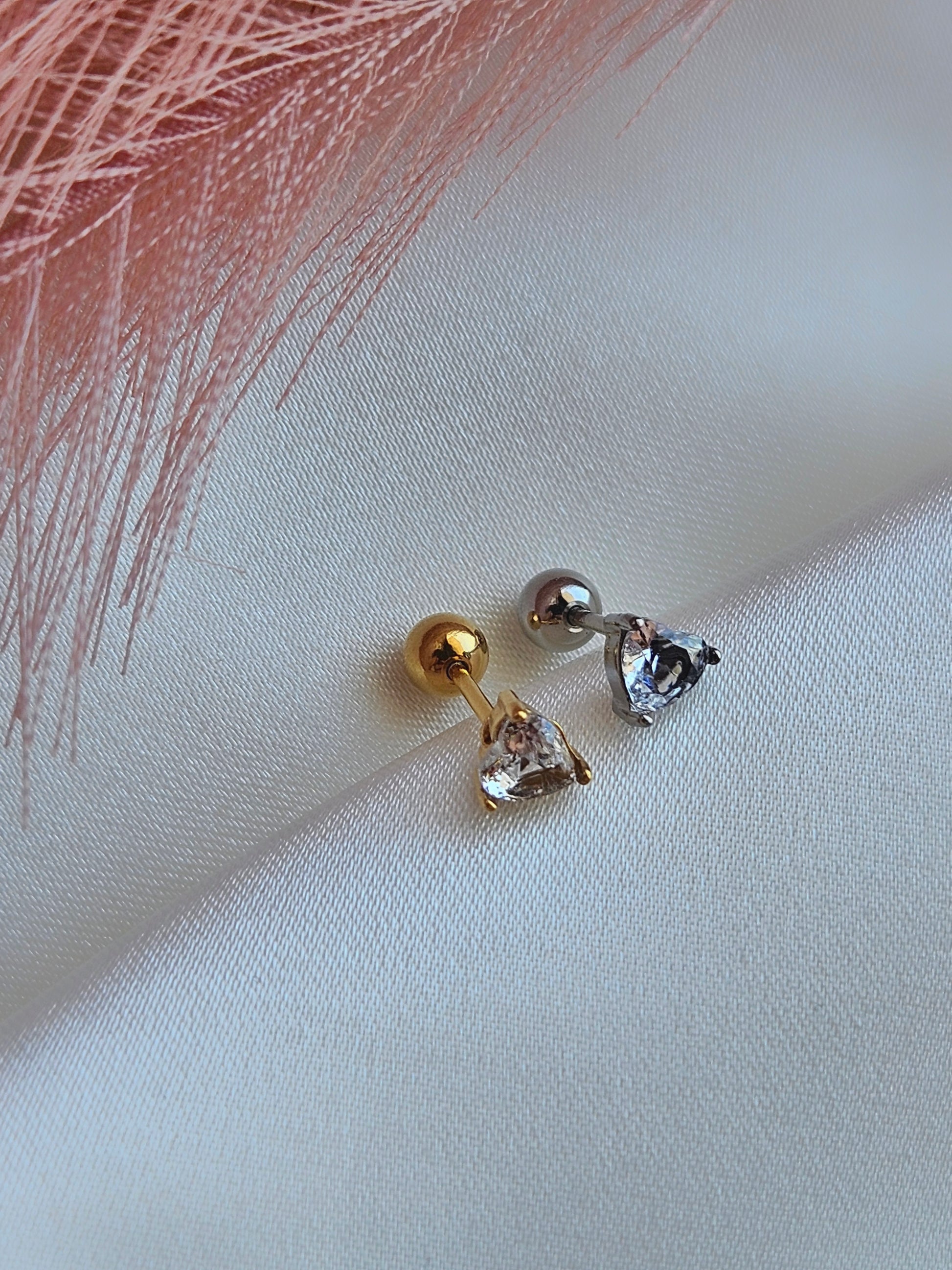 Piercing per lobo, helix o tragus in acciaio inox con zircone a forma di cuore dal taglio brillante. La chiusura è con sferetta, semplice da avvitare e sicura da indossare ogni giorno. Un modello classico e luminoso, perfetto come base per ogni combinazione.