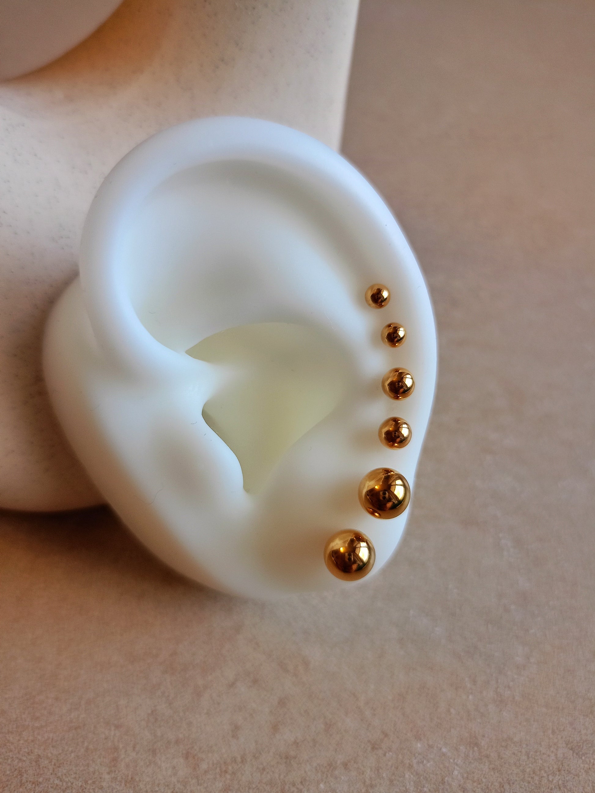 Un set completo con tre paia di orecchini a sfera: small, medium e large. Il classico intramontabile che si abbina a tutto, ideale per chi ama cambiare dimensione o creare combinazioni bilanciate tra i vari fori. Essenziali e sempre perfetti: un must assoluto del portagioie.