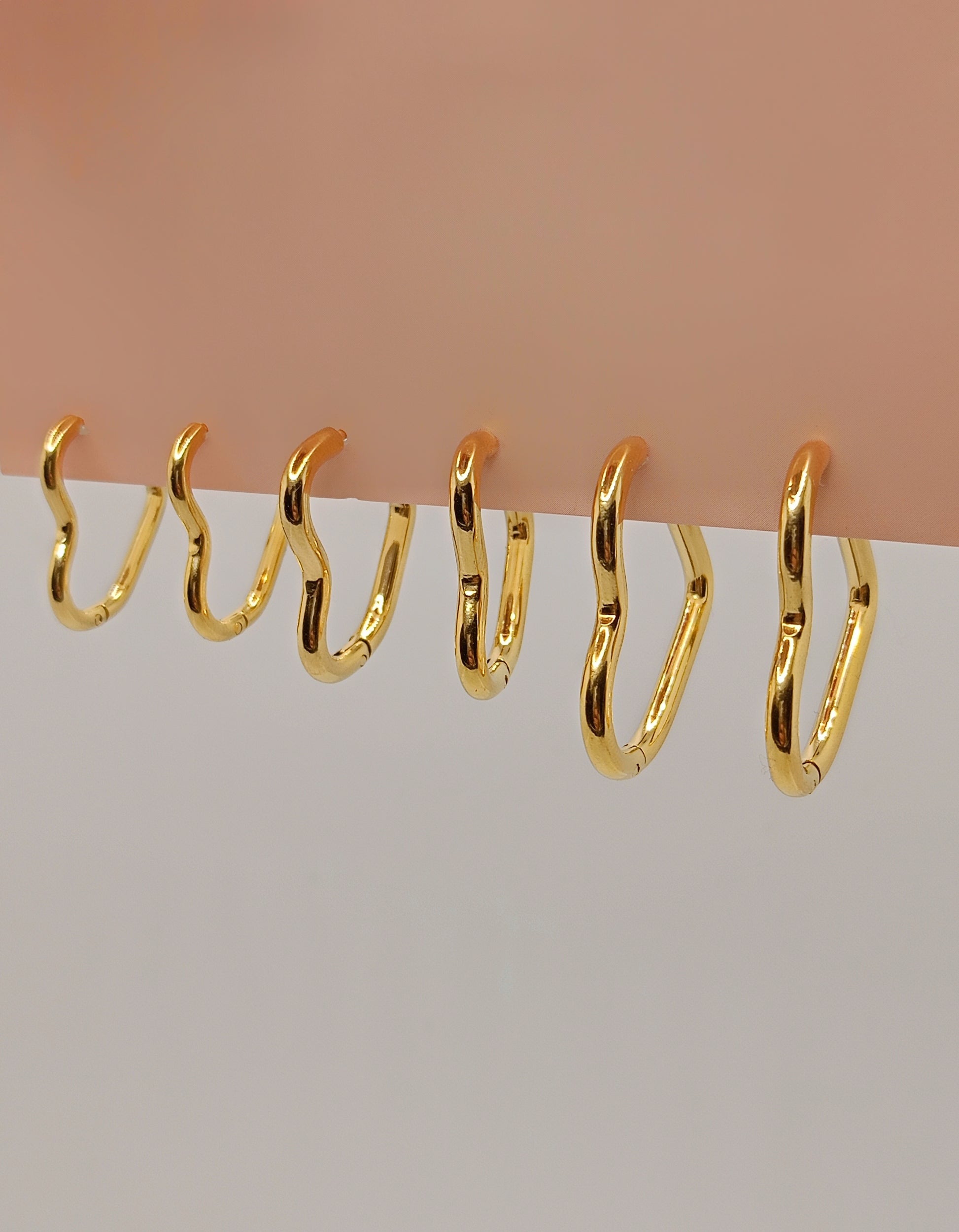 Set composto da tre coppie di orecchini a cuore in acciaio, dal design minimale e moderno. Le diverse dimensioni permettono di abbinarli insieme per un look a più fori o di indossarli singolarmente per uno stile elegante e romantico. Leggeri e versatili.